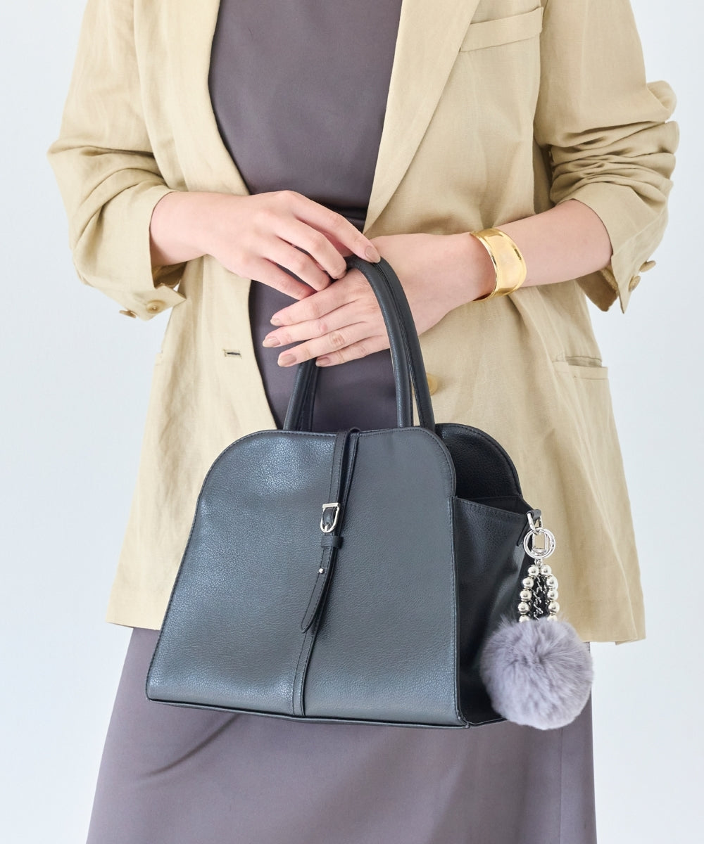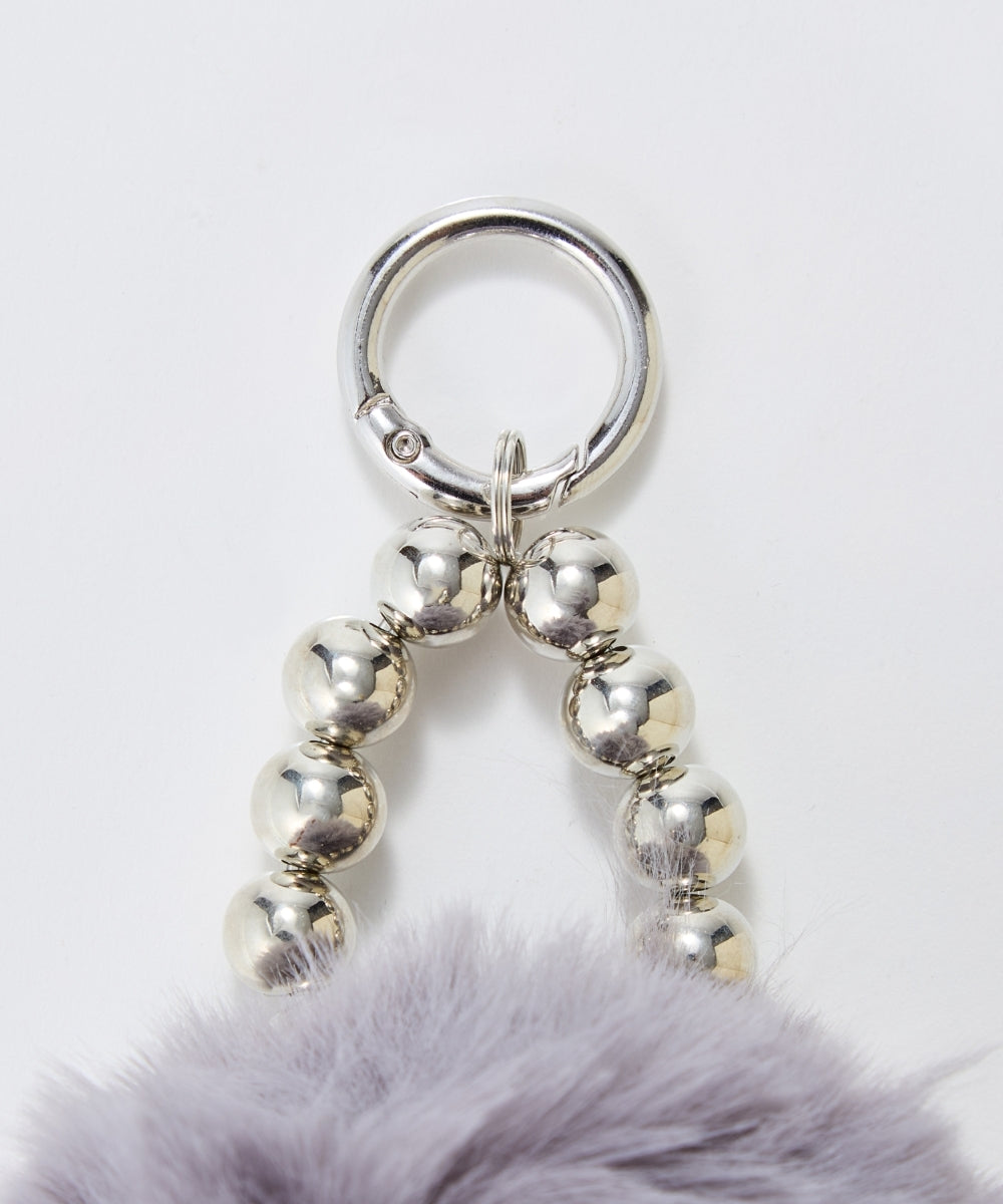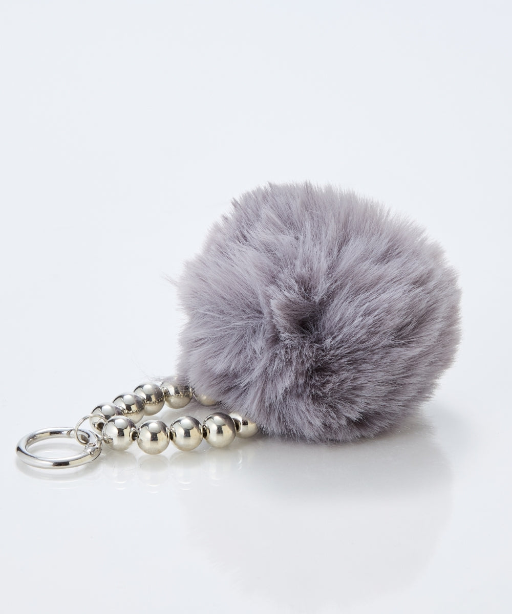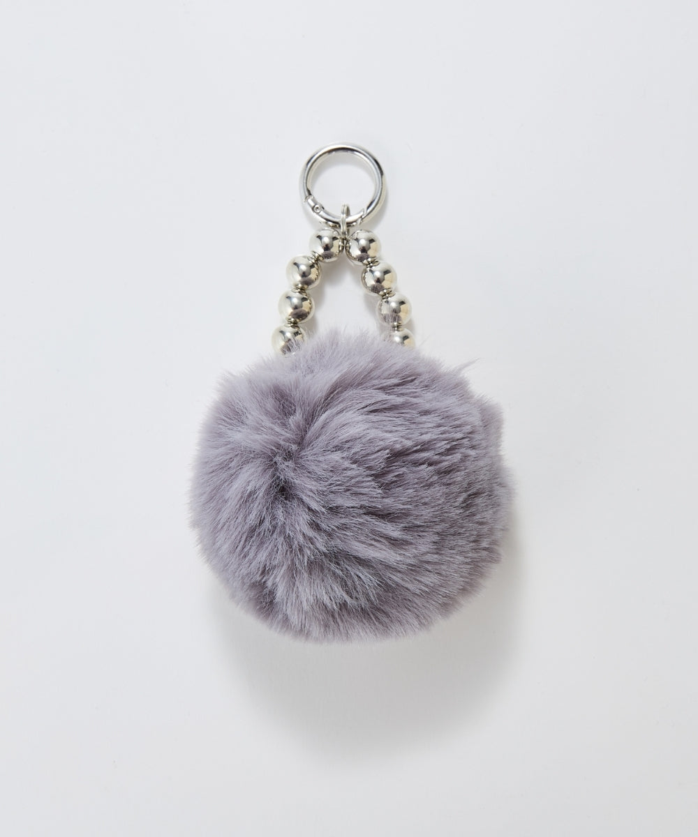 目を引くフェイクファーのバッグチャームが、いつもの装いに遊び心をプラス。