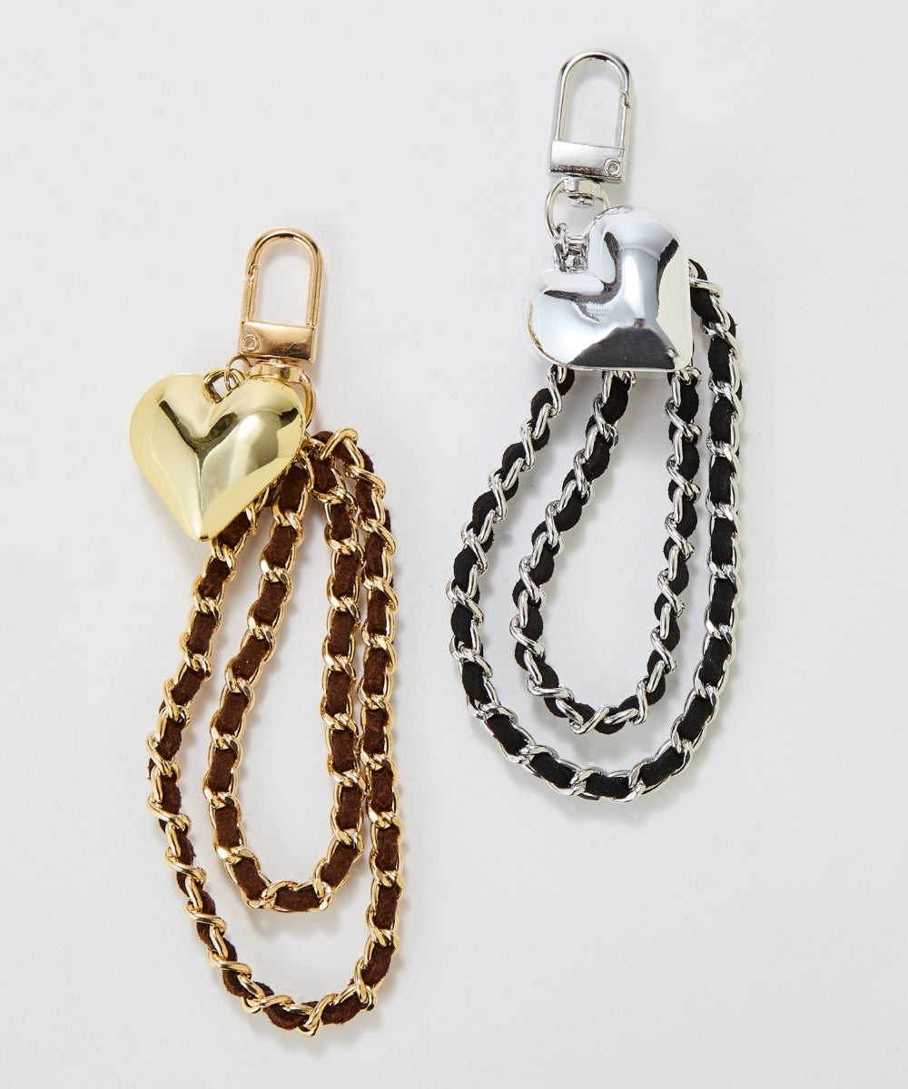 [スウェードチェーンハートバッグチャーム]