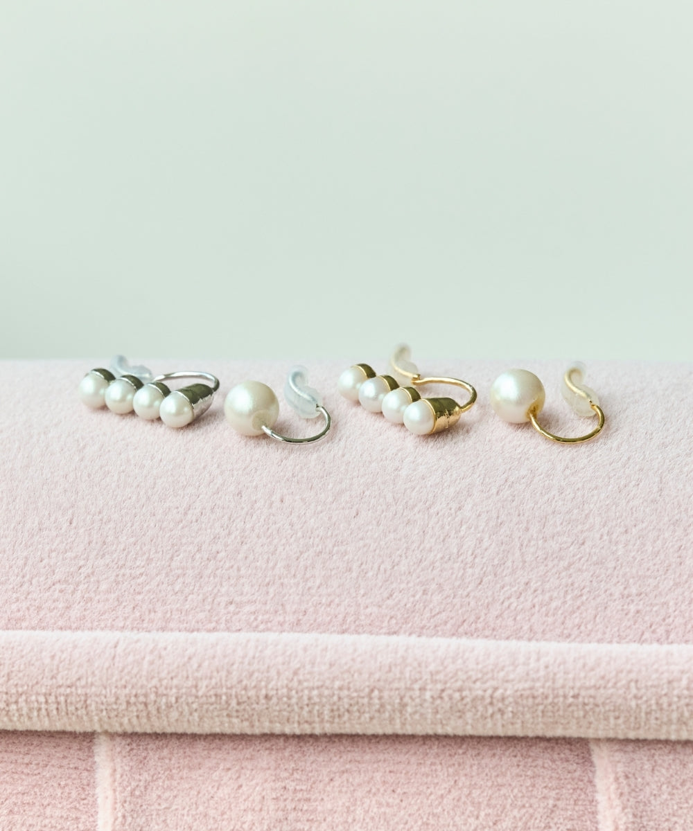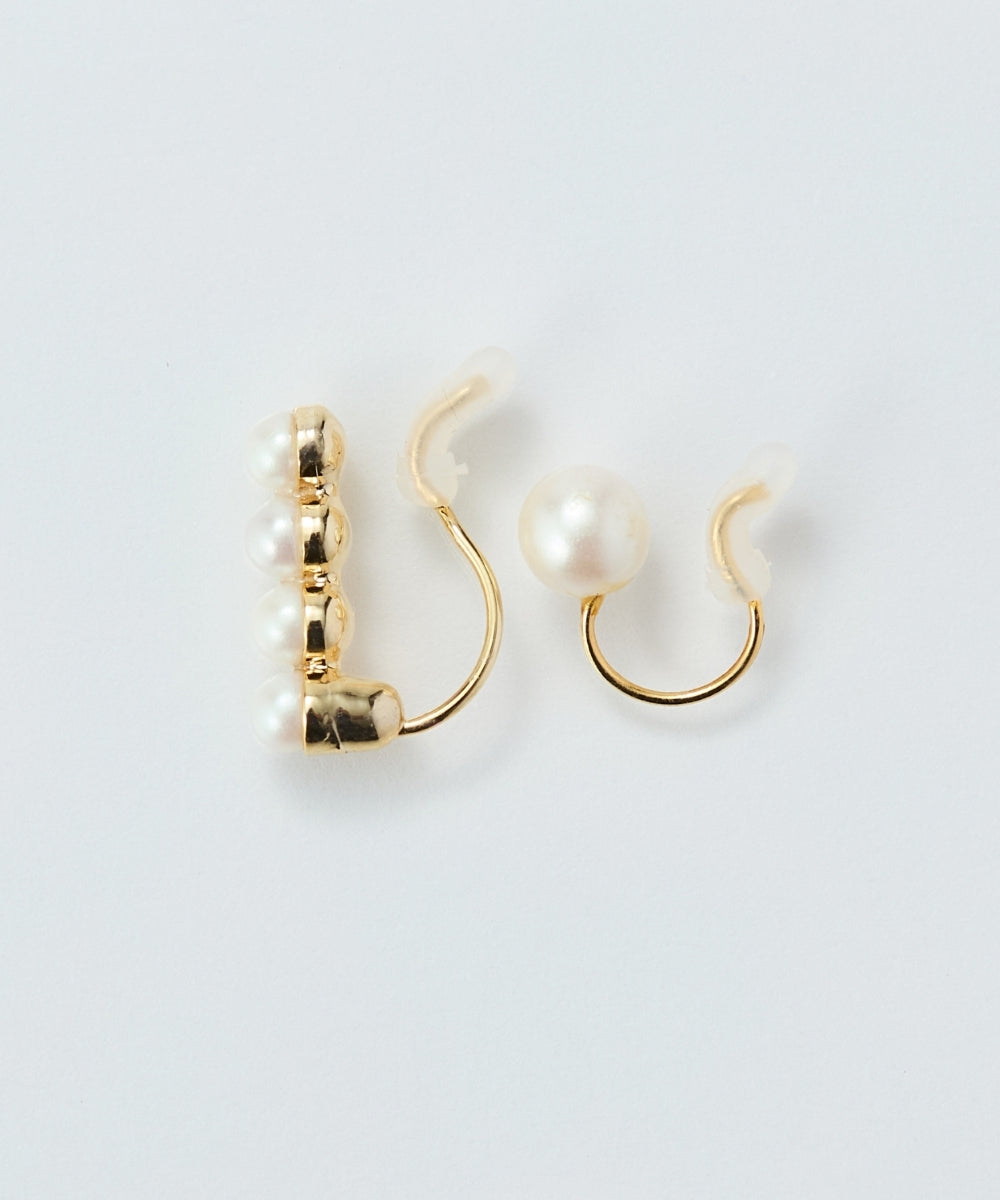 繊細なラインに沿ってパールをあしらった、上品な2セットイヤカフ。