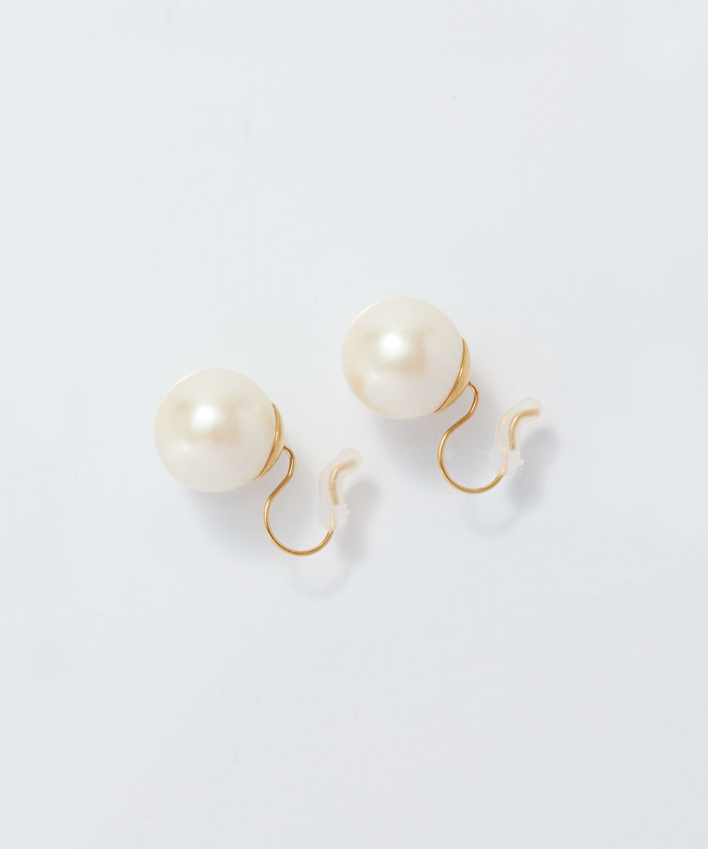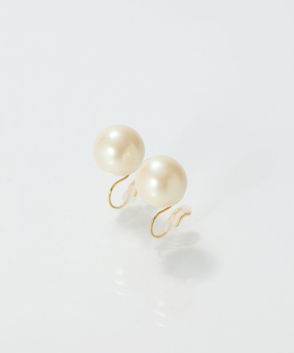 【大粒の一粒パールが華やかな、サージカルステンレス素材のライトフィットイヤリング】
