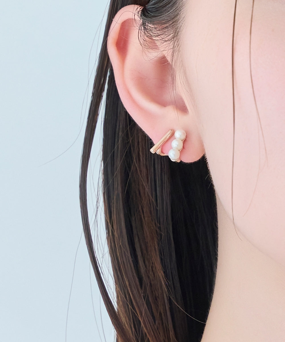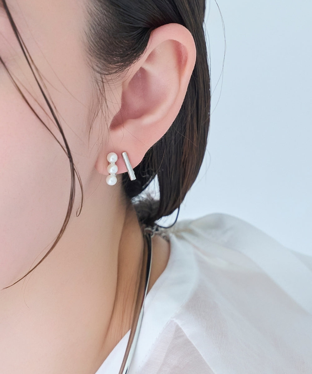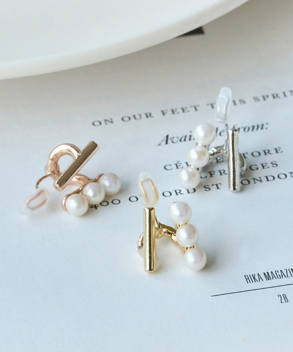 華奢なストレートラインと、縦に並べた3粒のパールがジュエリーライクなアイテム。