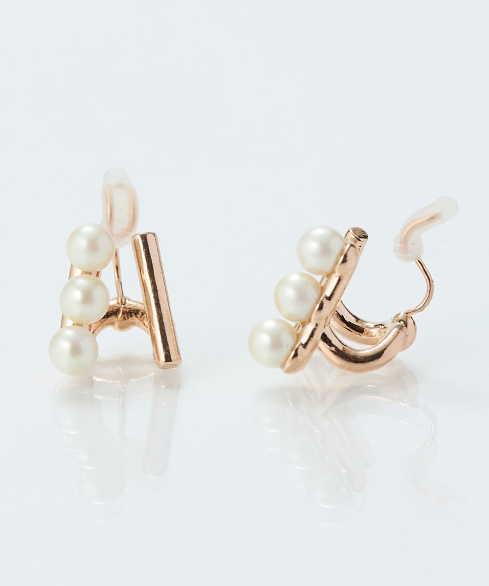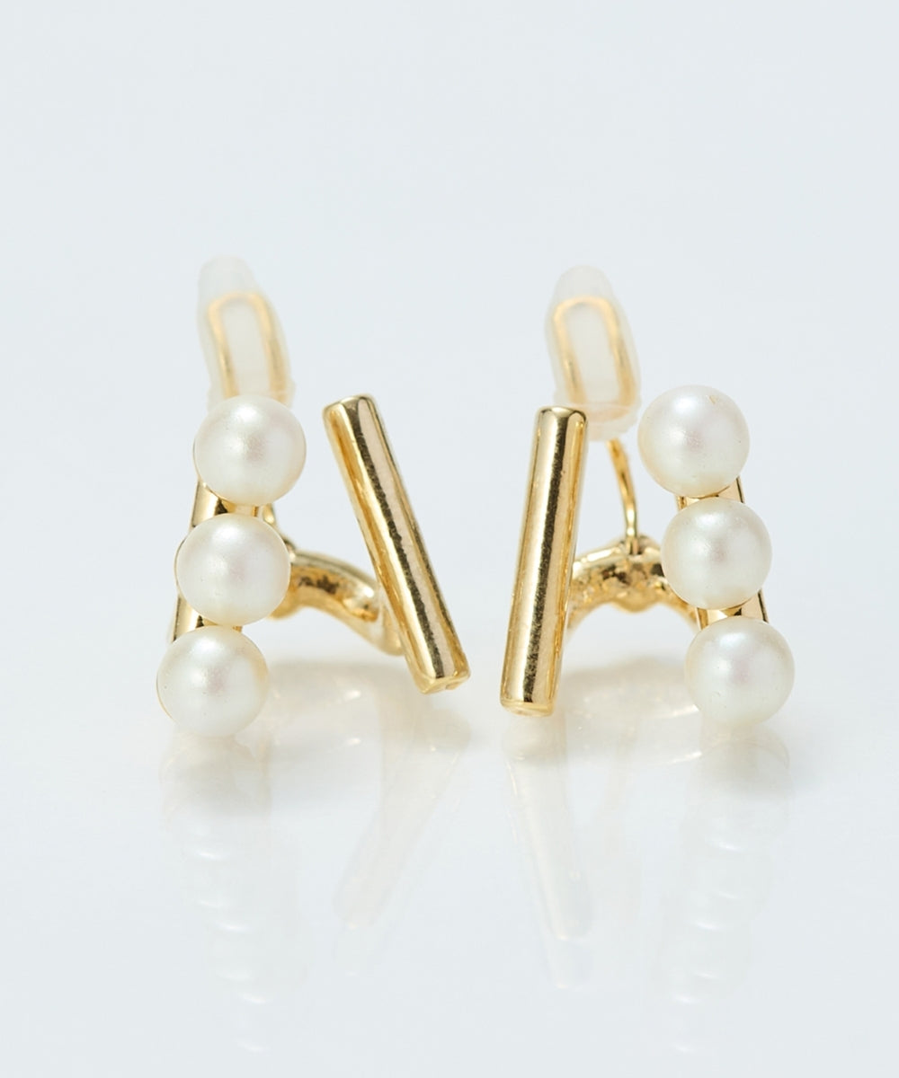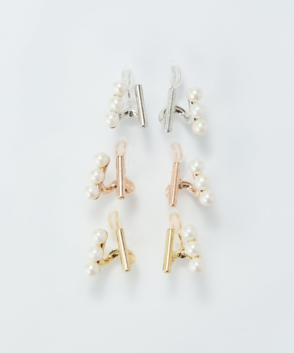華奢なストレートラインと、縦に並べた3粒のパールがジュエリーライクなアイテム。