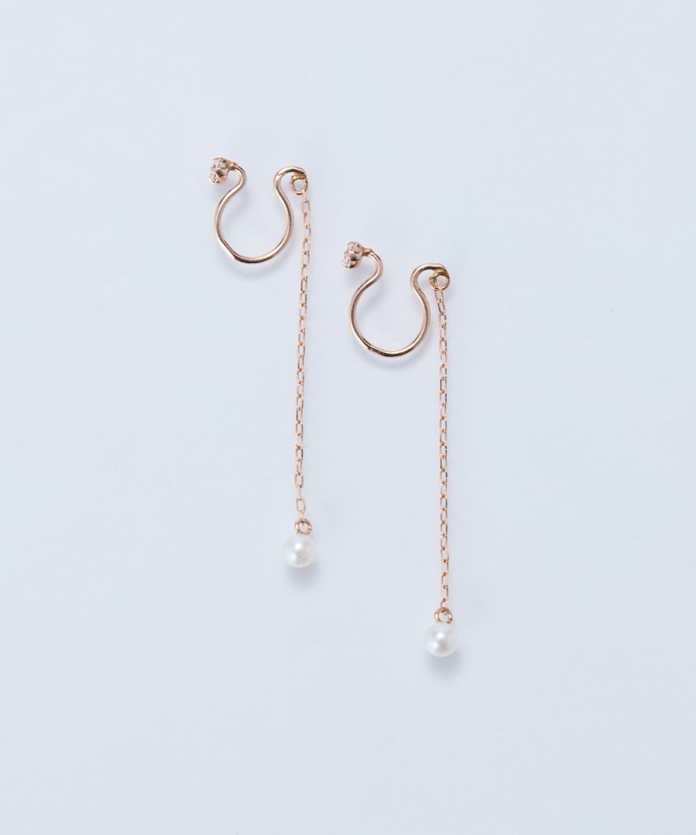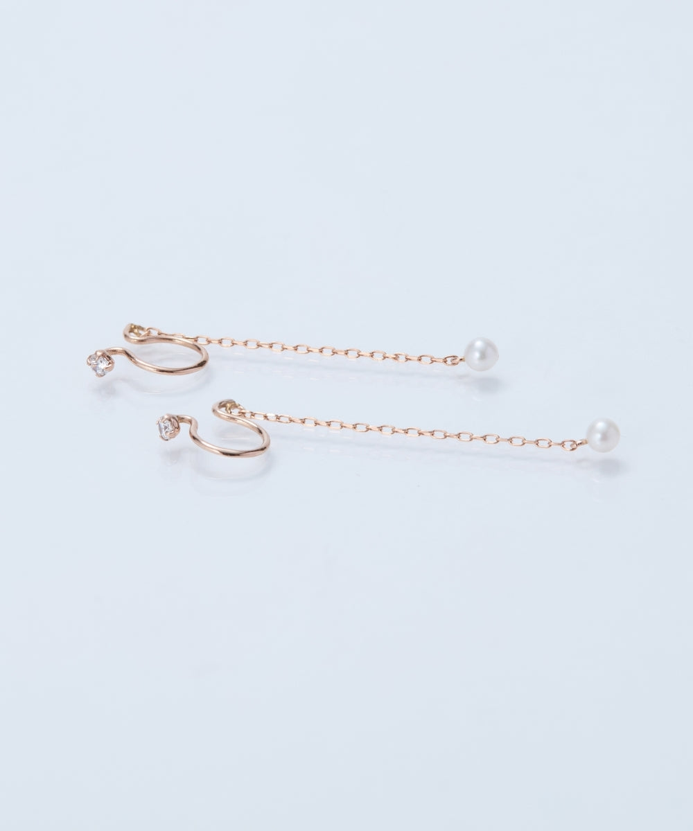 華奢なデザインで軽い着け心地とピアスのような見え感が叶うイヤリングです。
