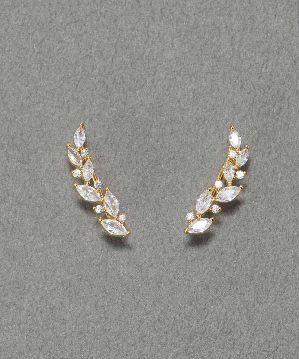 繊細なリーフモチーフをイメージしたマーキスカットのキュービックジルコニアが、耳元でエレガントに輝くデザイン。