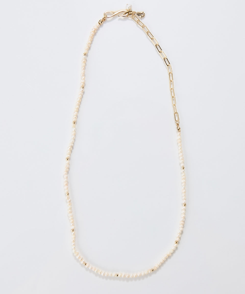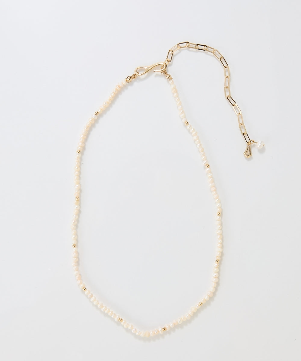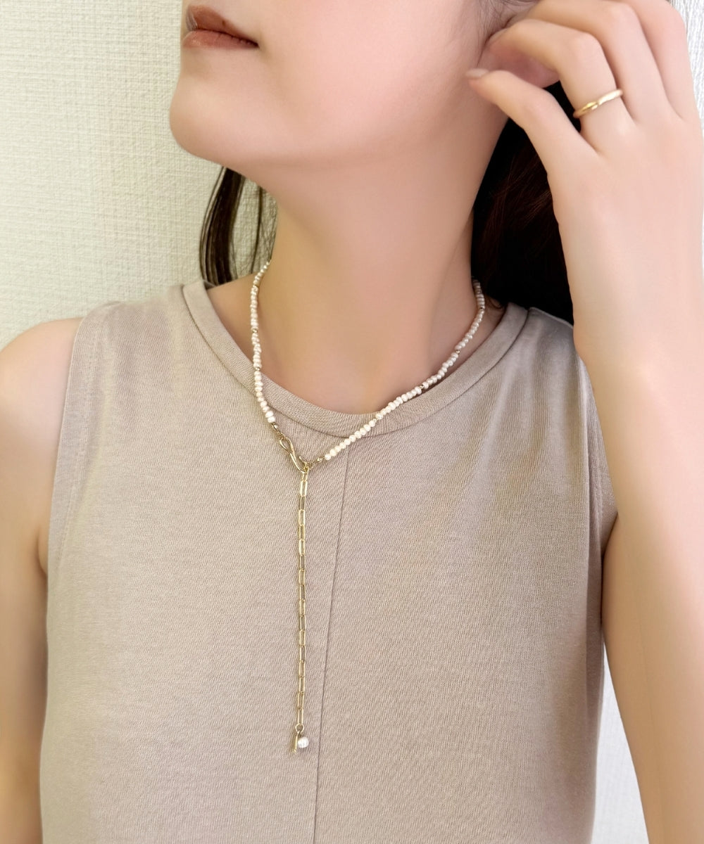 淡水パールでしか出せない自然な輝きを、繊細なチョーカーデザインに落とし込んだネックレス。