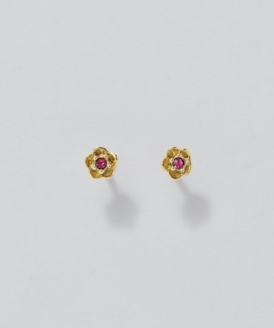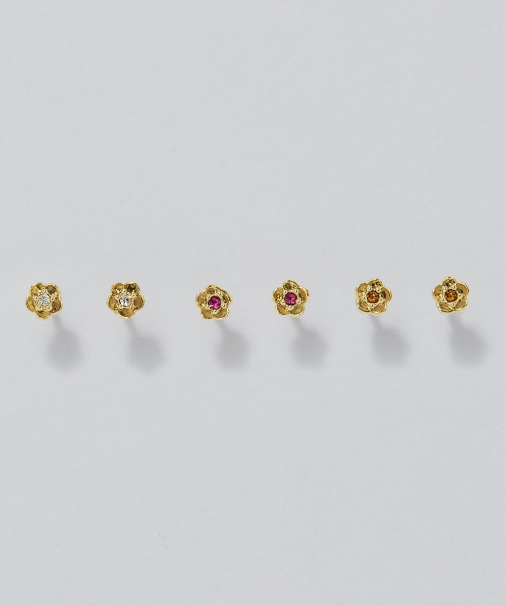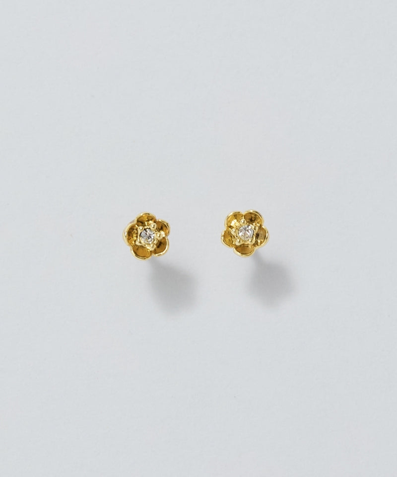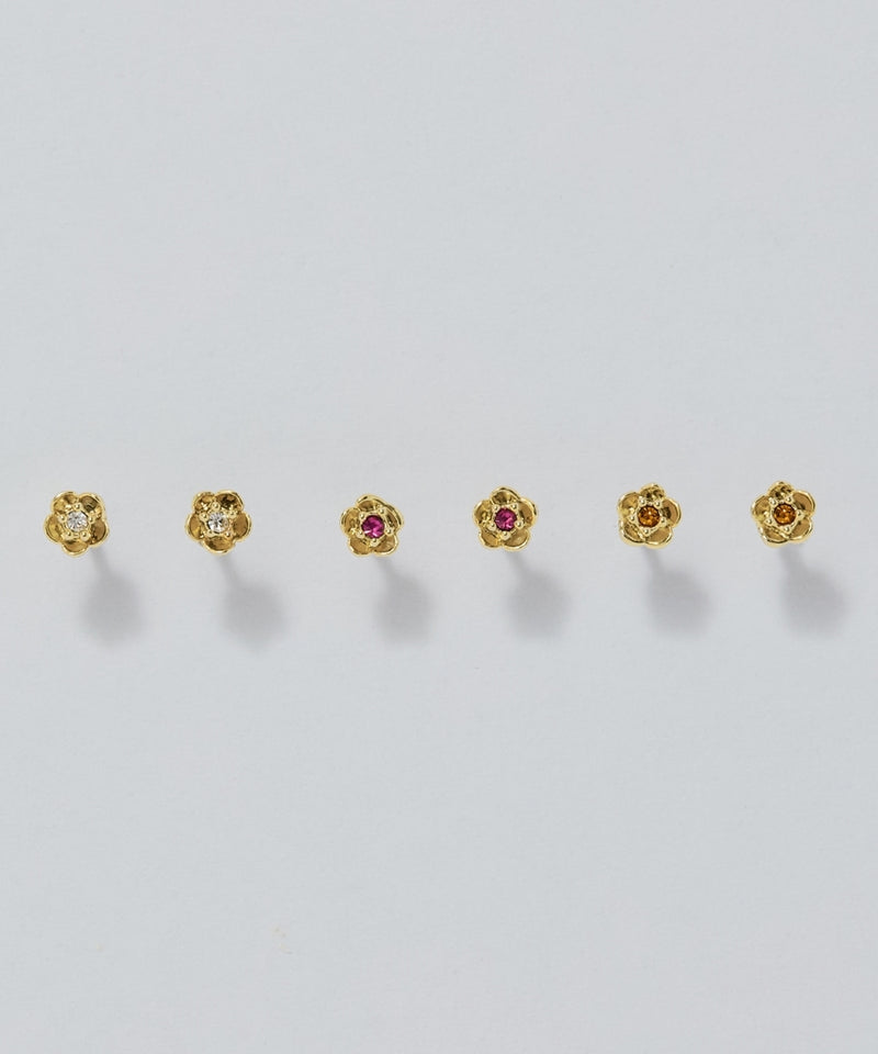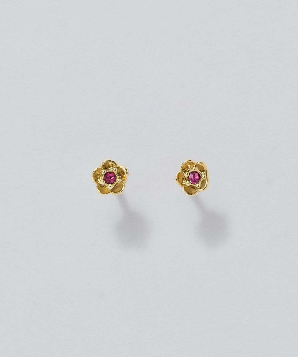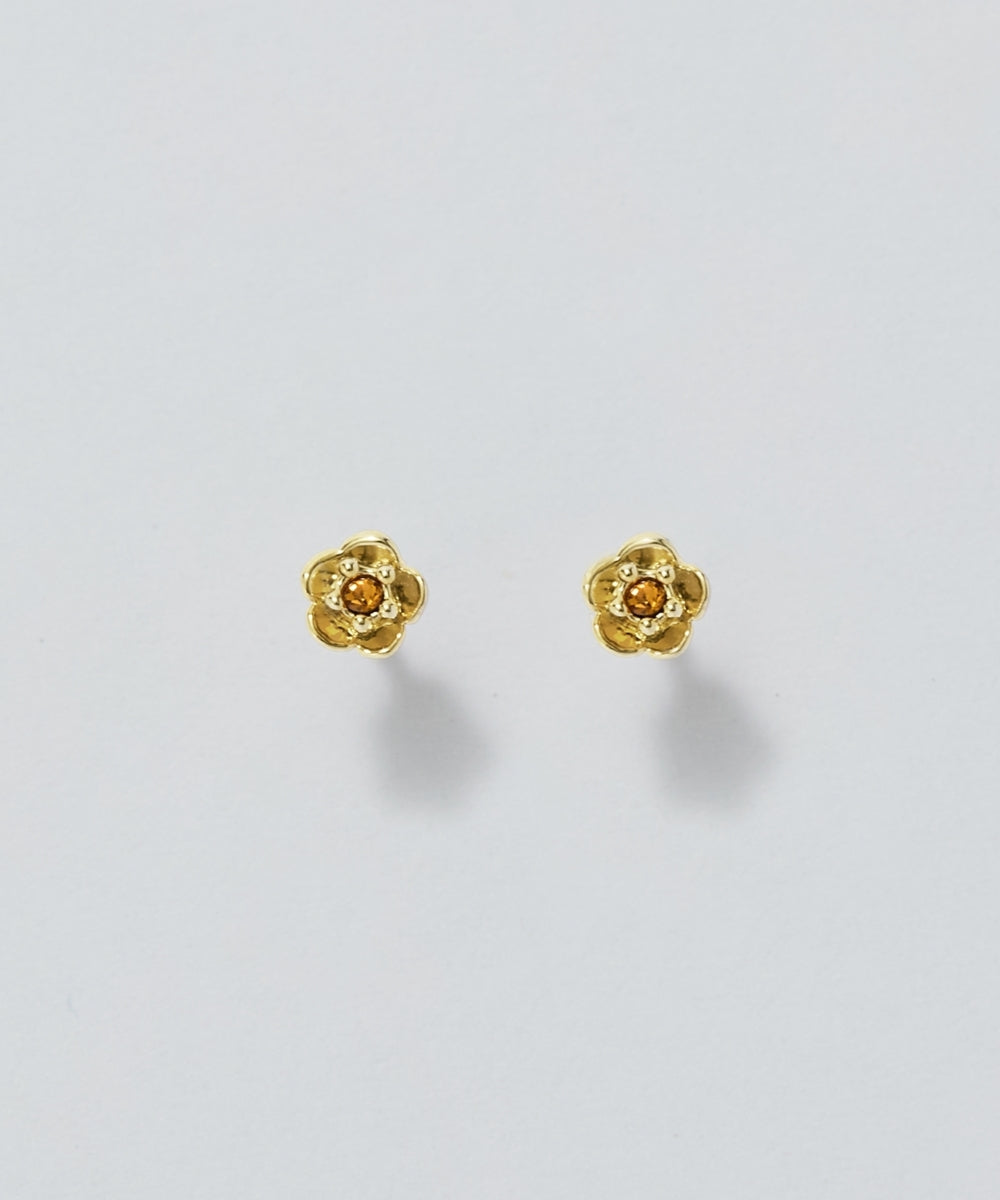 中央のカラーストーンと立体的に表現された花びらが、耳元にやさしい華やかさを添えるデザイン。