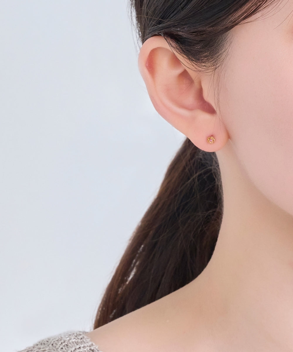 控えめなサイズ感で、イヤーカフや他のピアスとのレイヤードスタイルにも好相性。