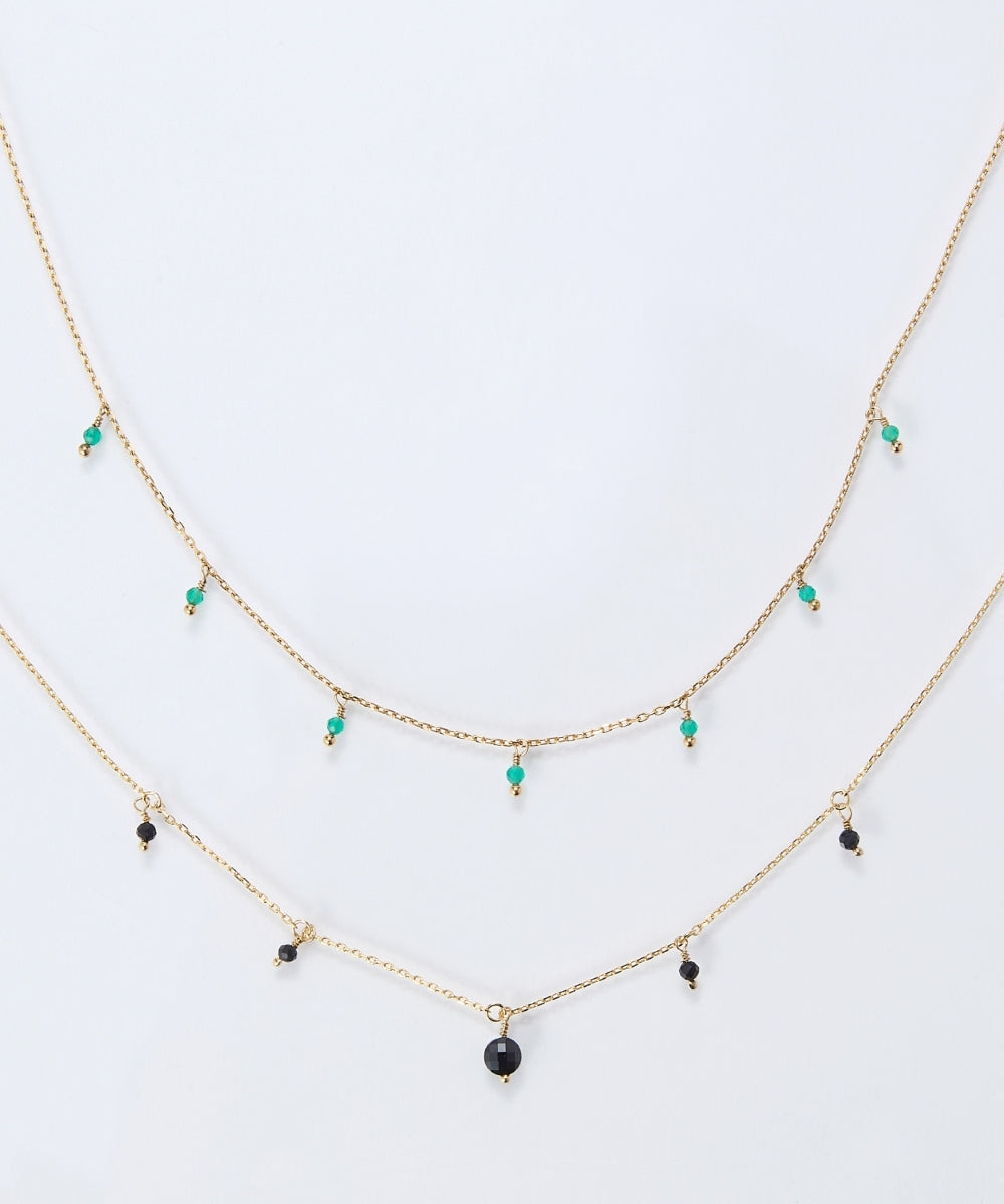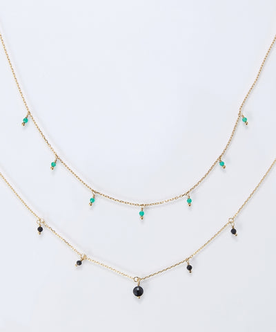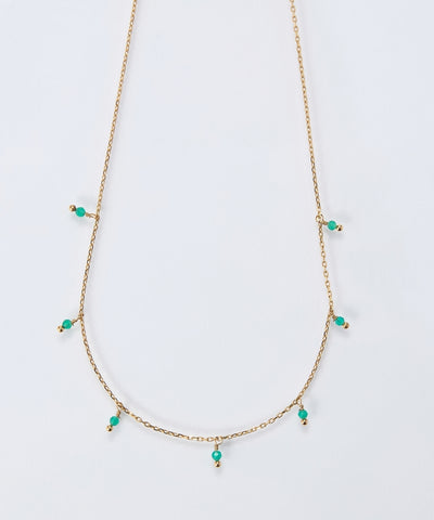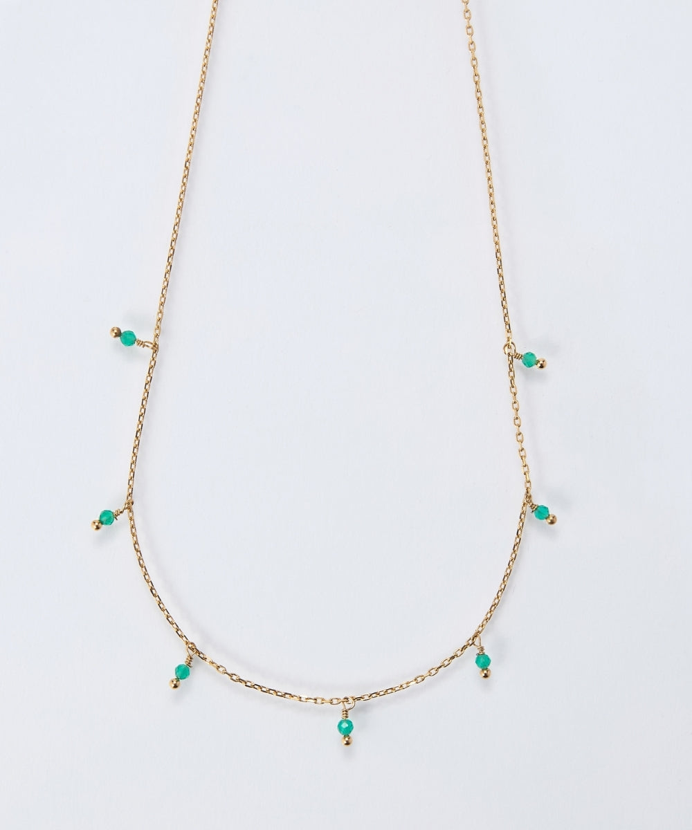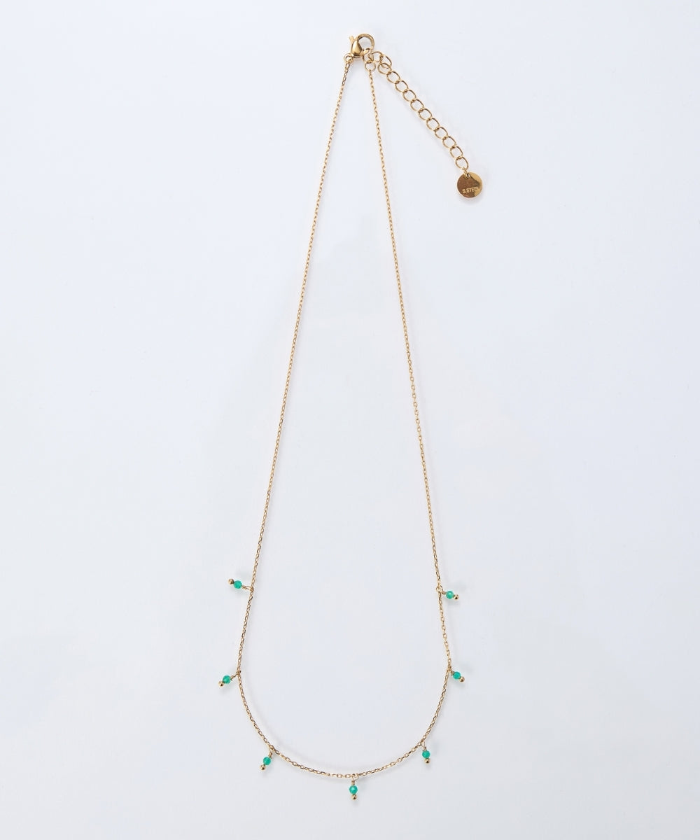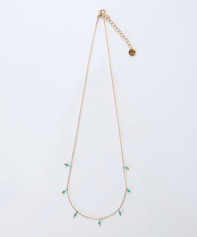 カラフルなグリーンクォーツが揺れるたびにキラッと光るステーションネックレス。