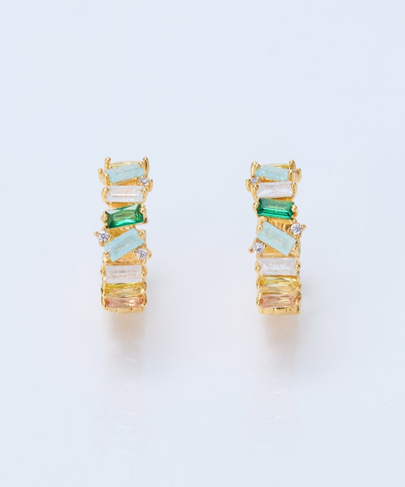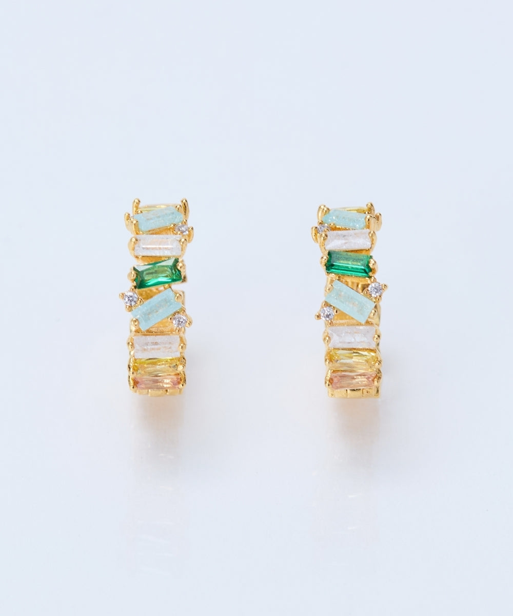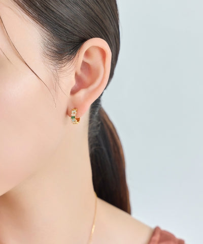 【品よく彩る、大人のためのカラービジューフープピアス】