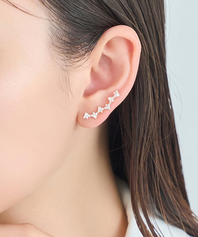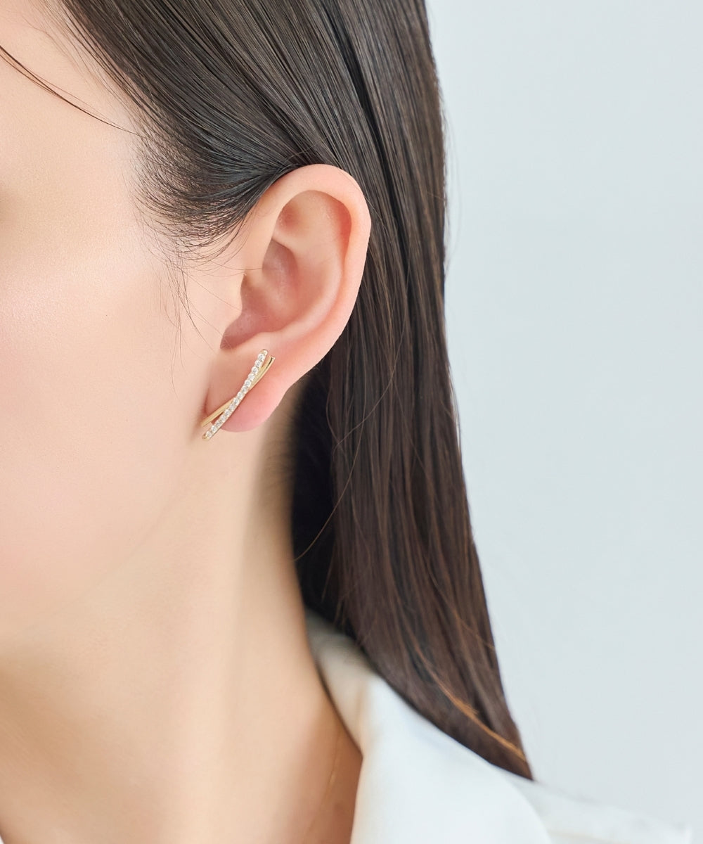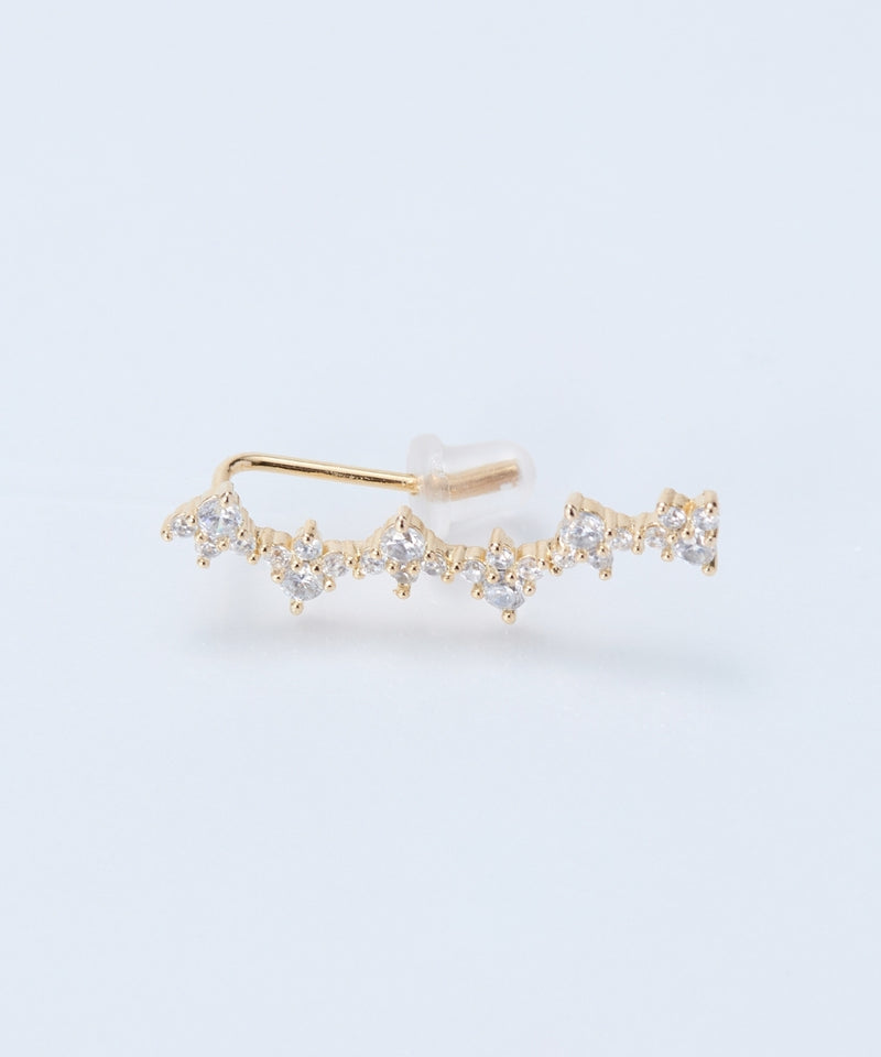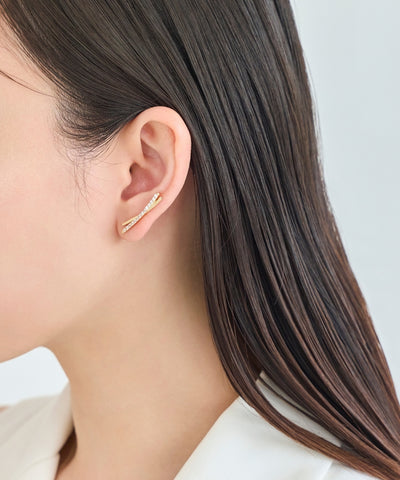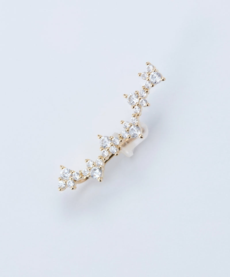 複数の小さなキュービックジルコニアが耳元で煌めくデザイン。