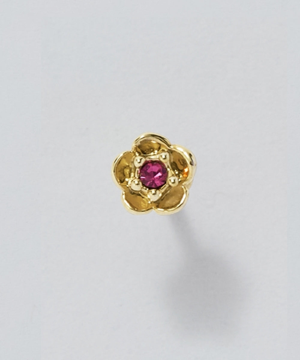 中央のカラーストーンと立体的に表現された花びらが、耳元にやさしい華やかさを添えるデザイン。