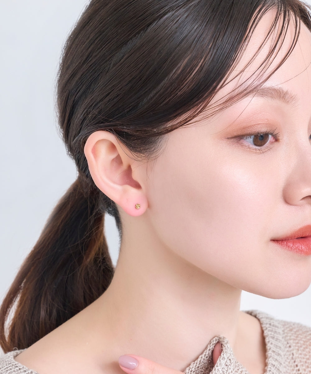 控えめなサイズ感で、イヤーカフや他のピアスとのレイヤードスタイルにも好相性。