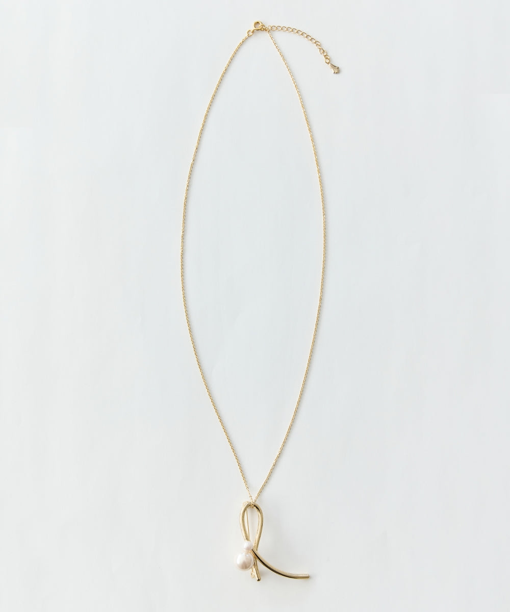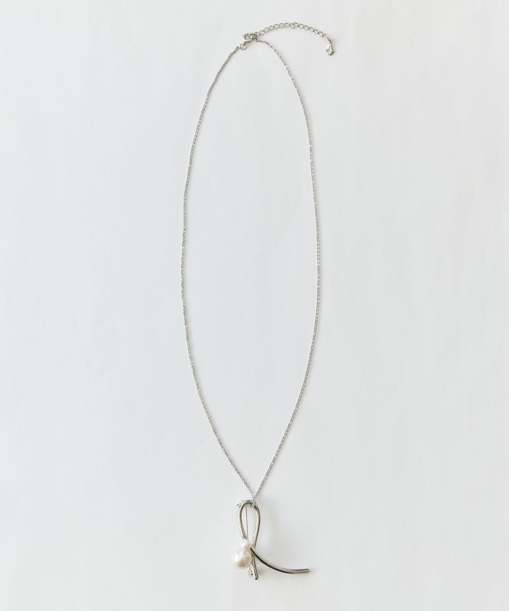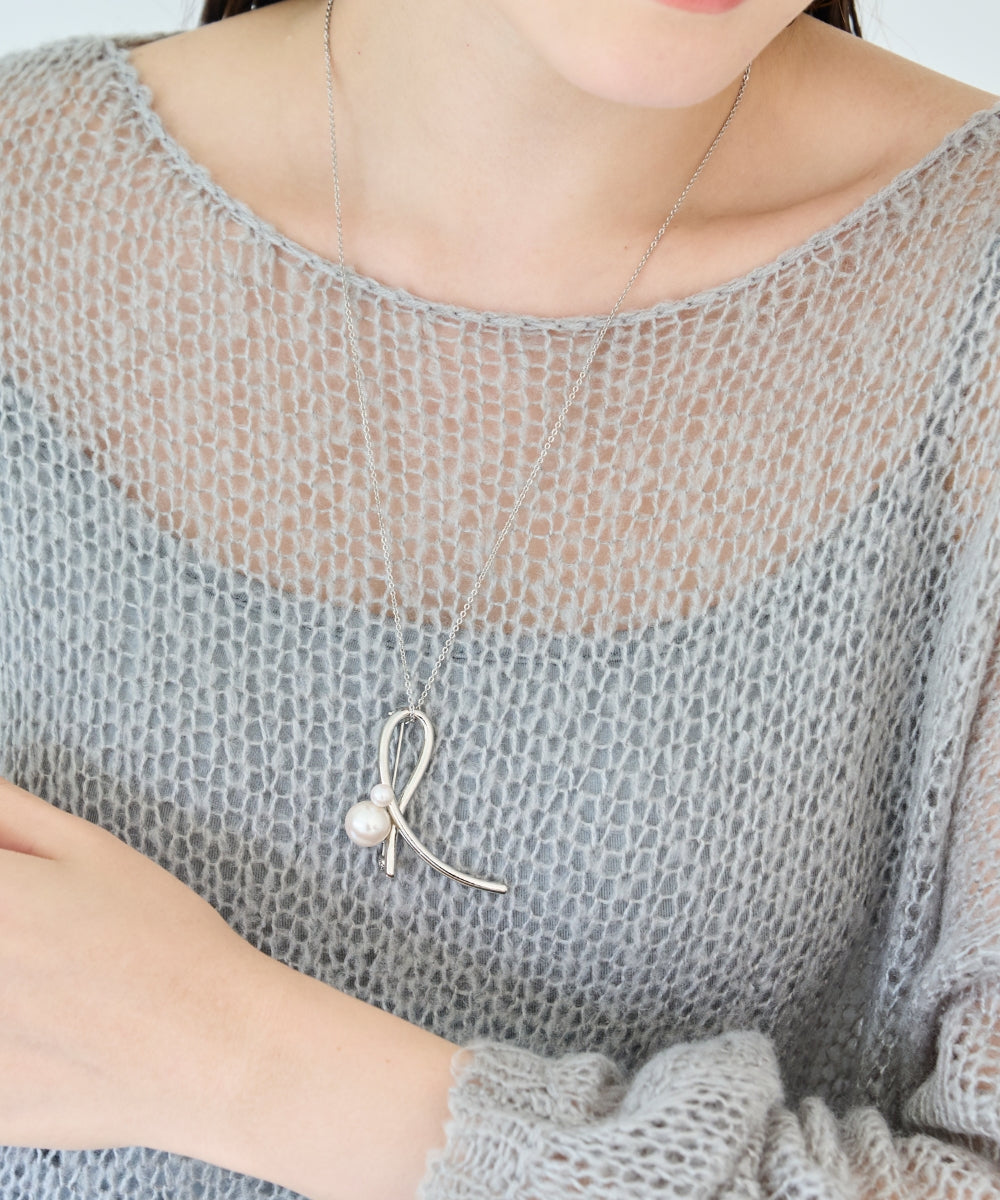 リボンのようにクロスしたメタルラインに、上品なパールをあしらった Phoebe オリジナルデザインです。