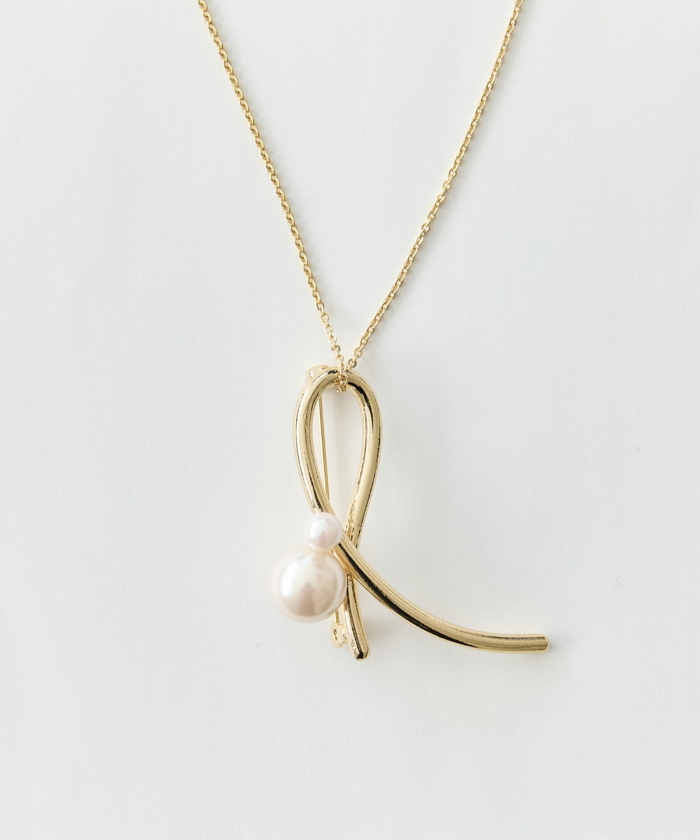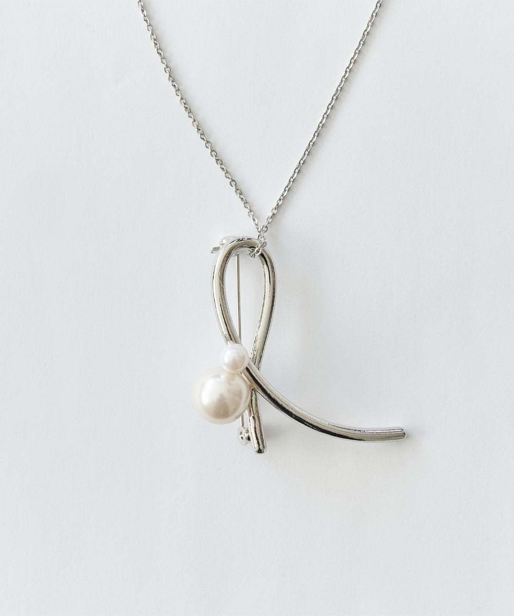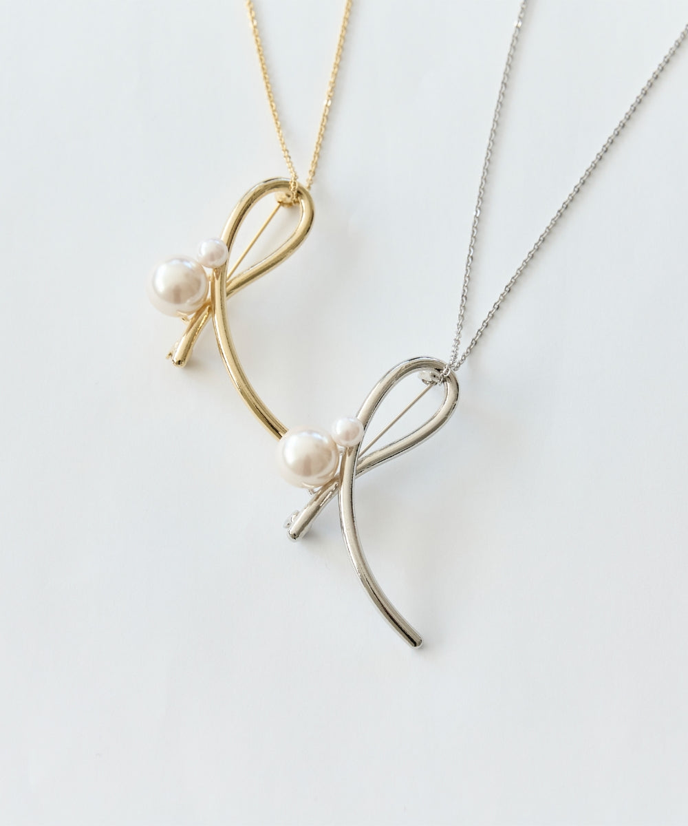 【ハレの日のマストアイテム♪ 上品に華やぐメタル×パールの2wayブローチ&ネックレスセット】
