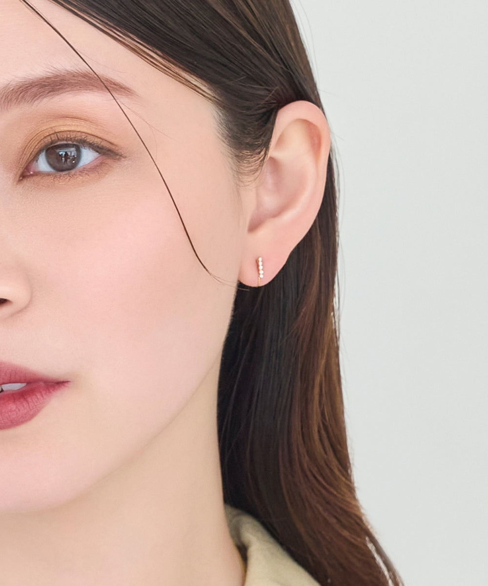 イヤリング金具を最小限に軽量化したことで、ストレスフリーな着け心地とピアスのようなルックスを実現♪