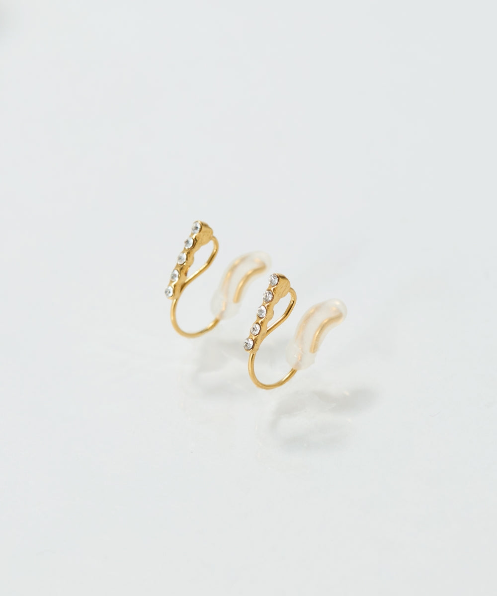【煌めく5連ストーンのサージカルステンレス素材のライトフィットイヤリング】