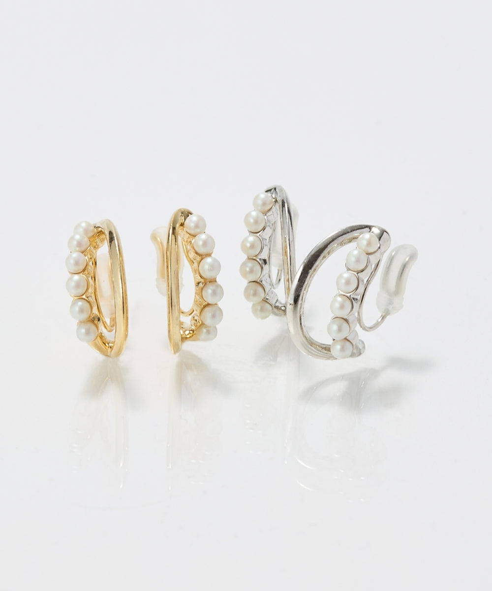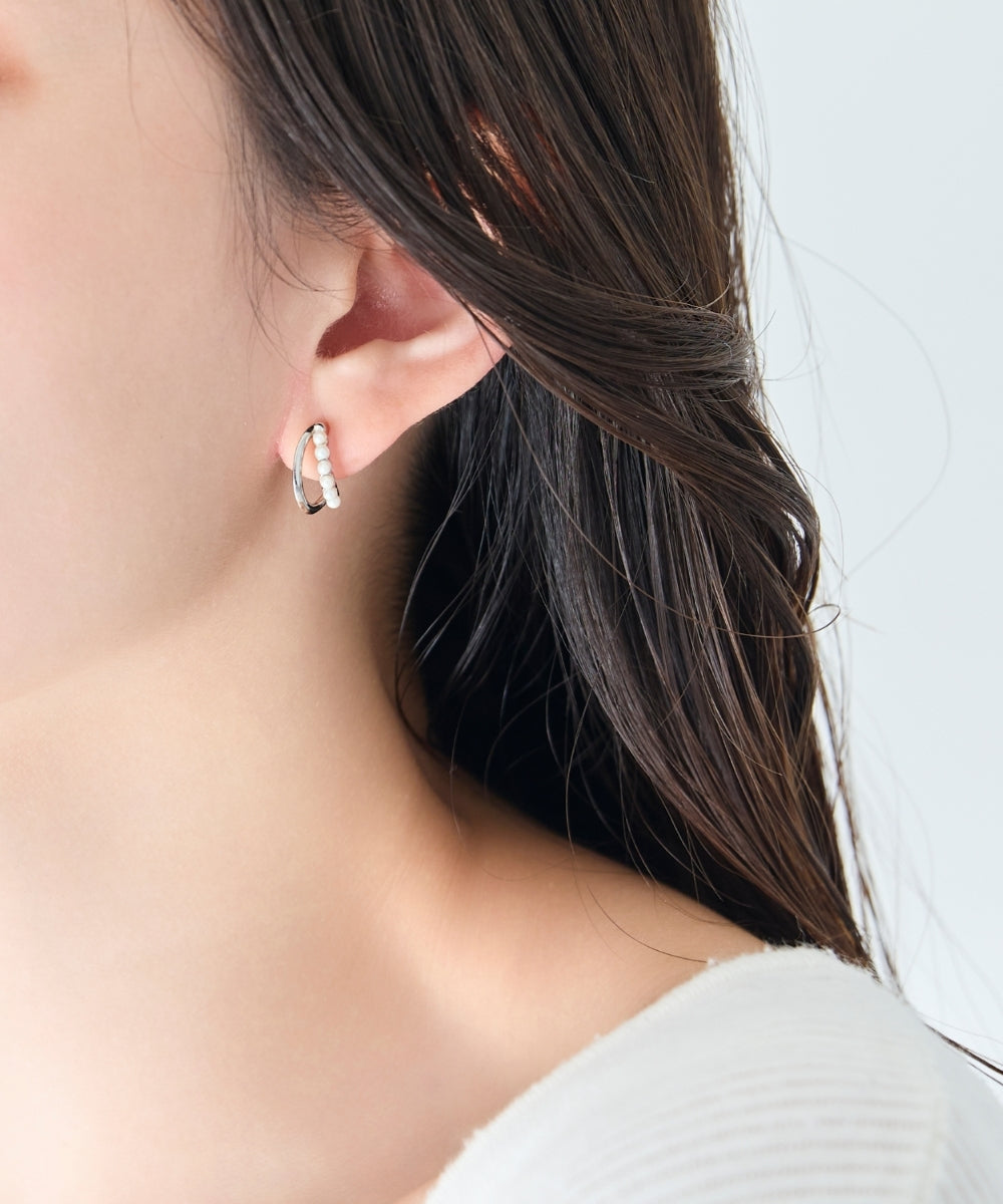 【パールとメタルのダブルラインで、耳元にフェミニンモードな輝き♪】