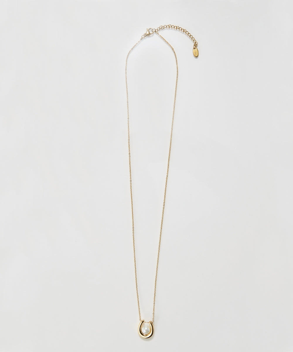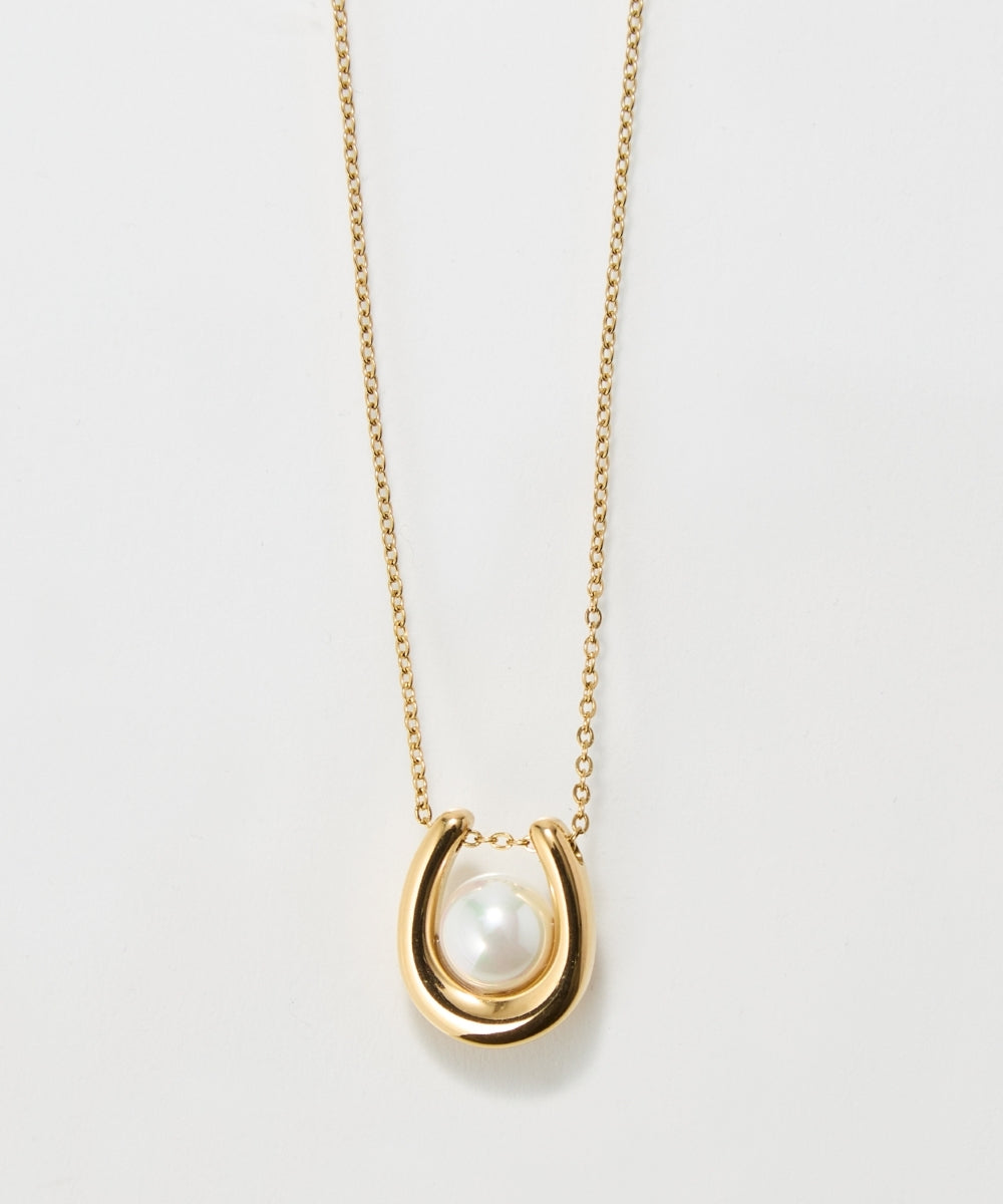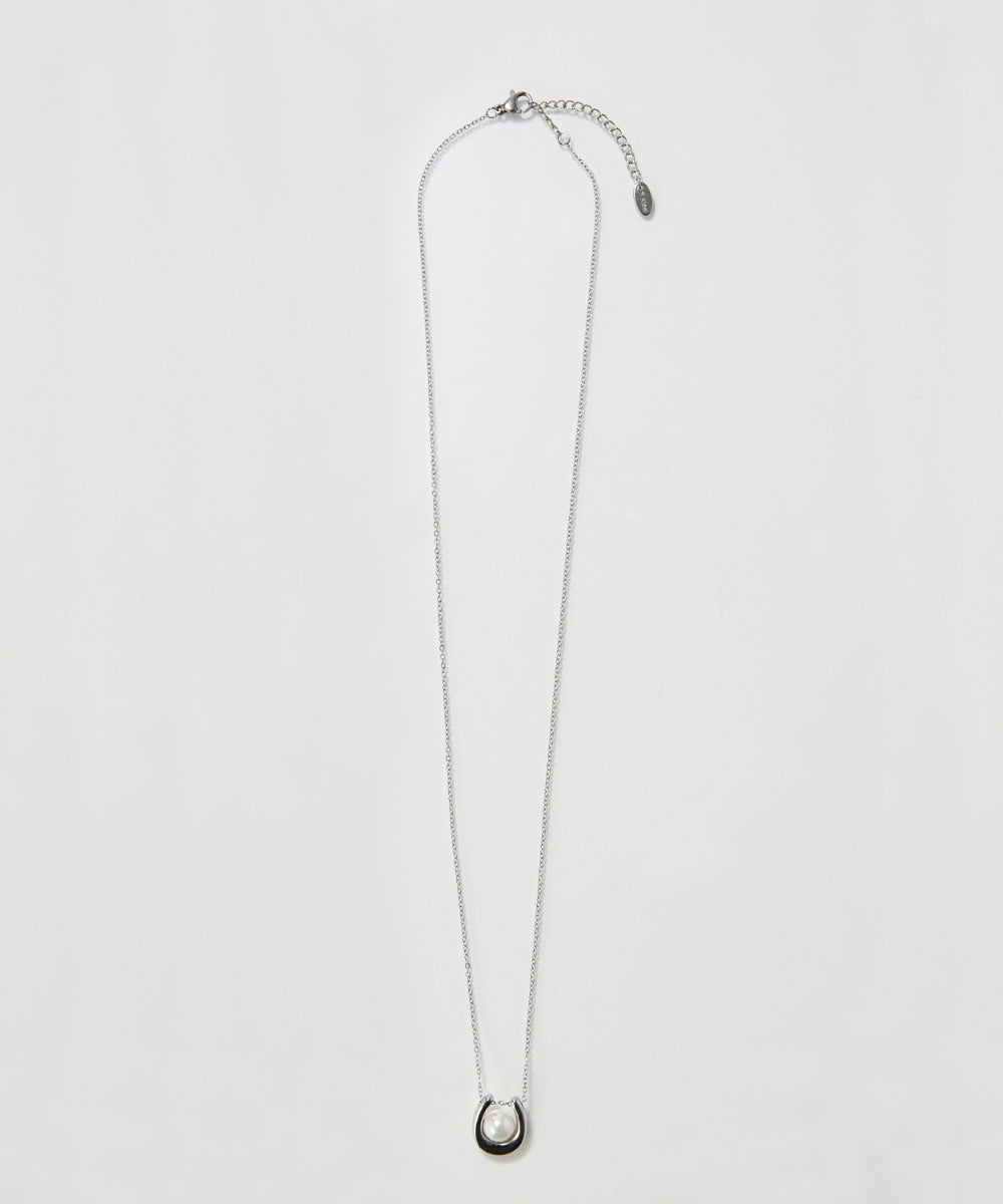 [【金属アレルギー対応】メタリックパールホースシューネックレス ステンレス/馬蹄/蹄鉄/ラッキーモチーフ/ギフト/プレゼント/大ぶり]