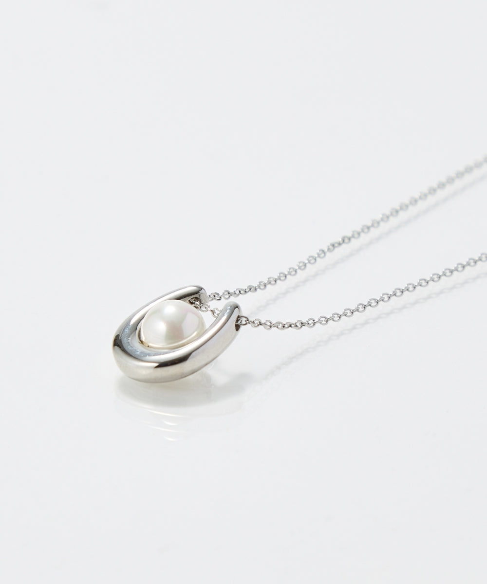 シンプルで洗練されたデザインながら、パールのやさしい輝きが首もとにさりげない華やかさを添えます。