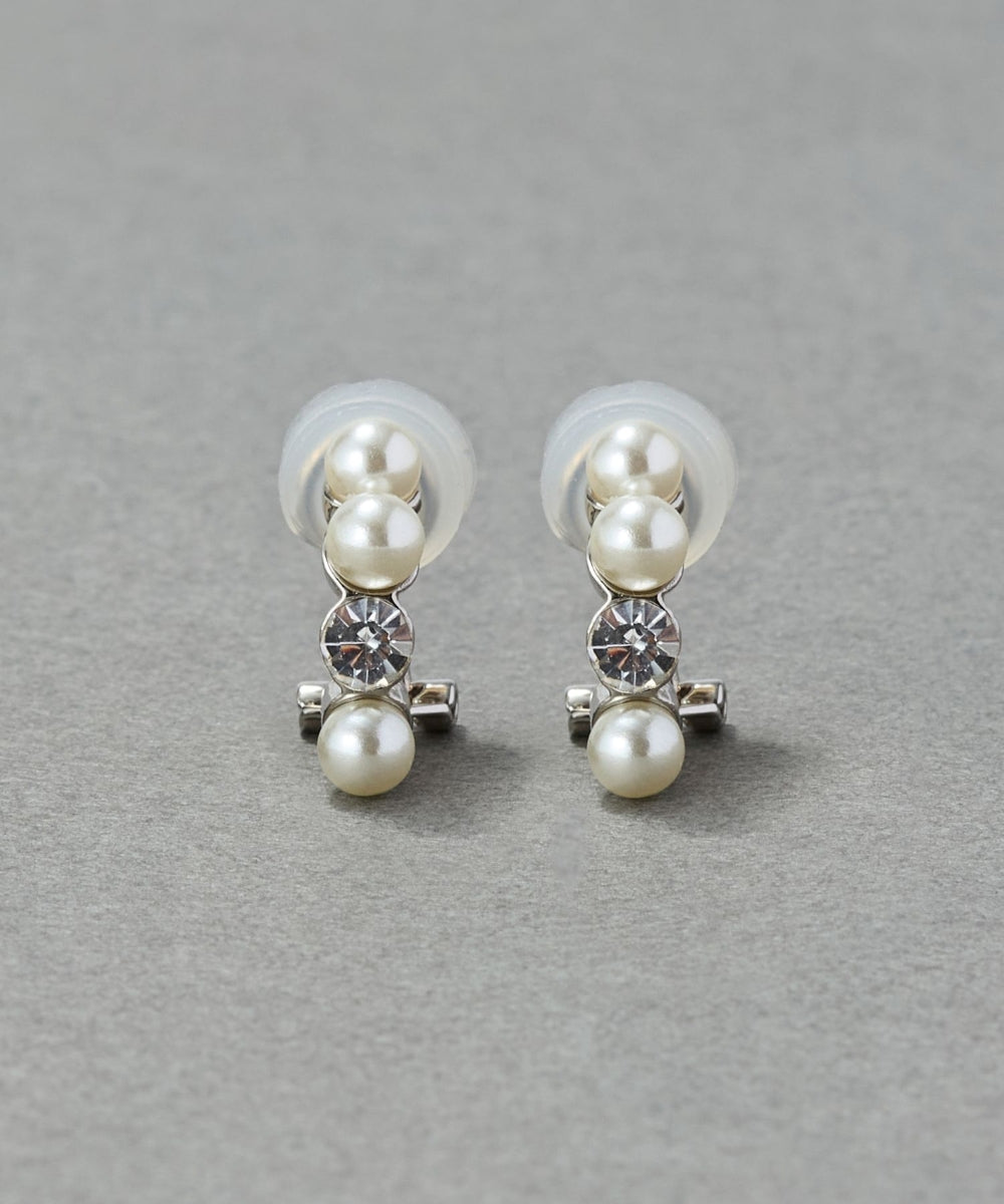 【縦に並べたパールビジューが艶めくエアリーイヤリング】
