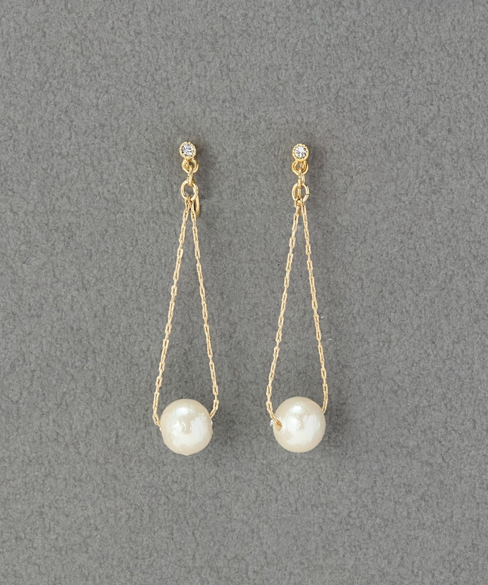 繊細なチェーンに揺れる一粒のパールが、お顔周りを女性らしく華やかに仕上げてくれるデザイン♪