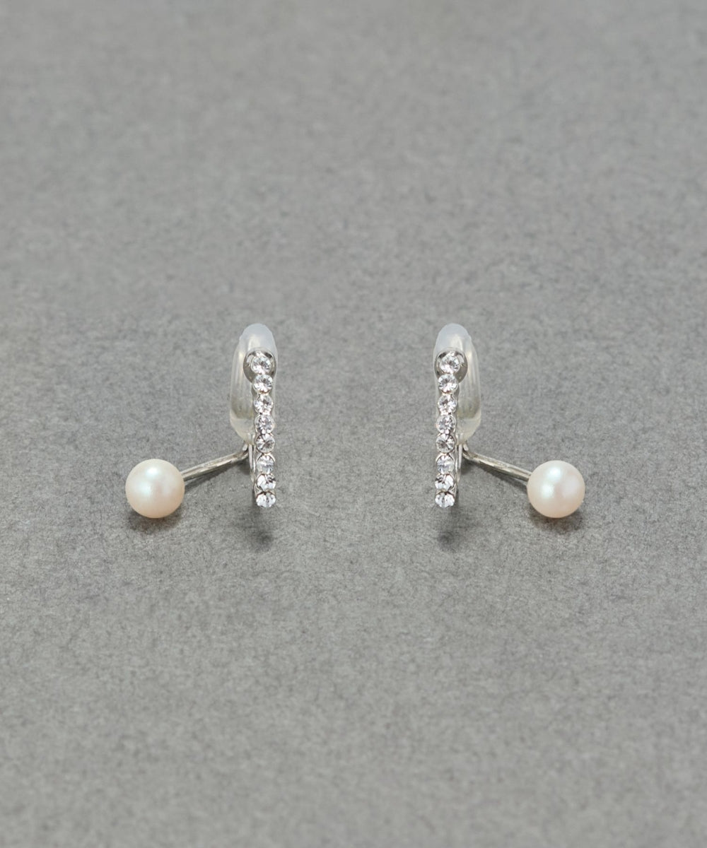 着用すると耳たぶの縁からパールが覗いて、2つのピアスをしているかのようなルックスもポイントです。