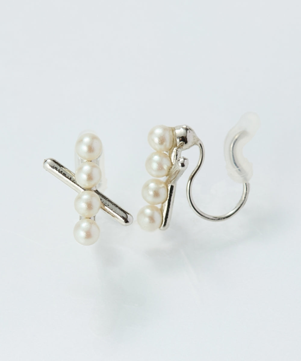 【痛くないシリーズ/金属アレルギー対応】パールクロスライトフィットイヤリング