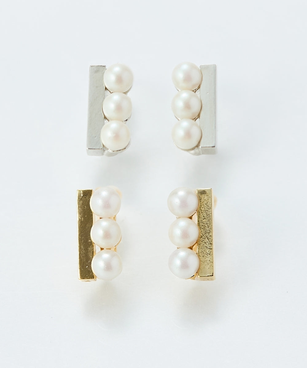 ゴールドバーに沿って、パールがきれいに3粒並んだ上品デザイン。