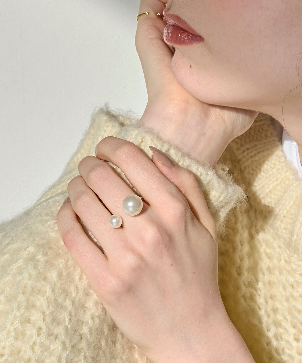 【人の目を惹く大きなパールで指と指の間を飾るフリーサイズリング】