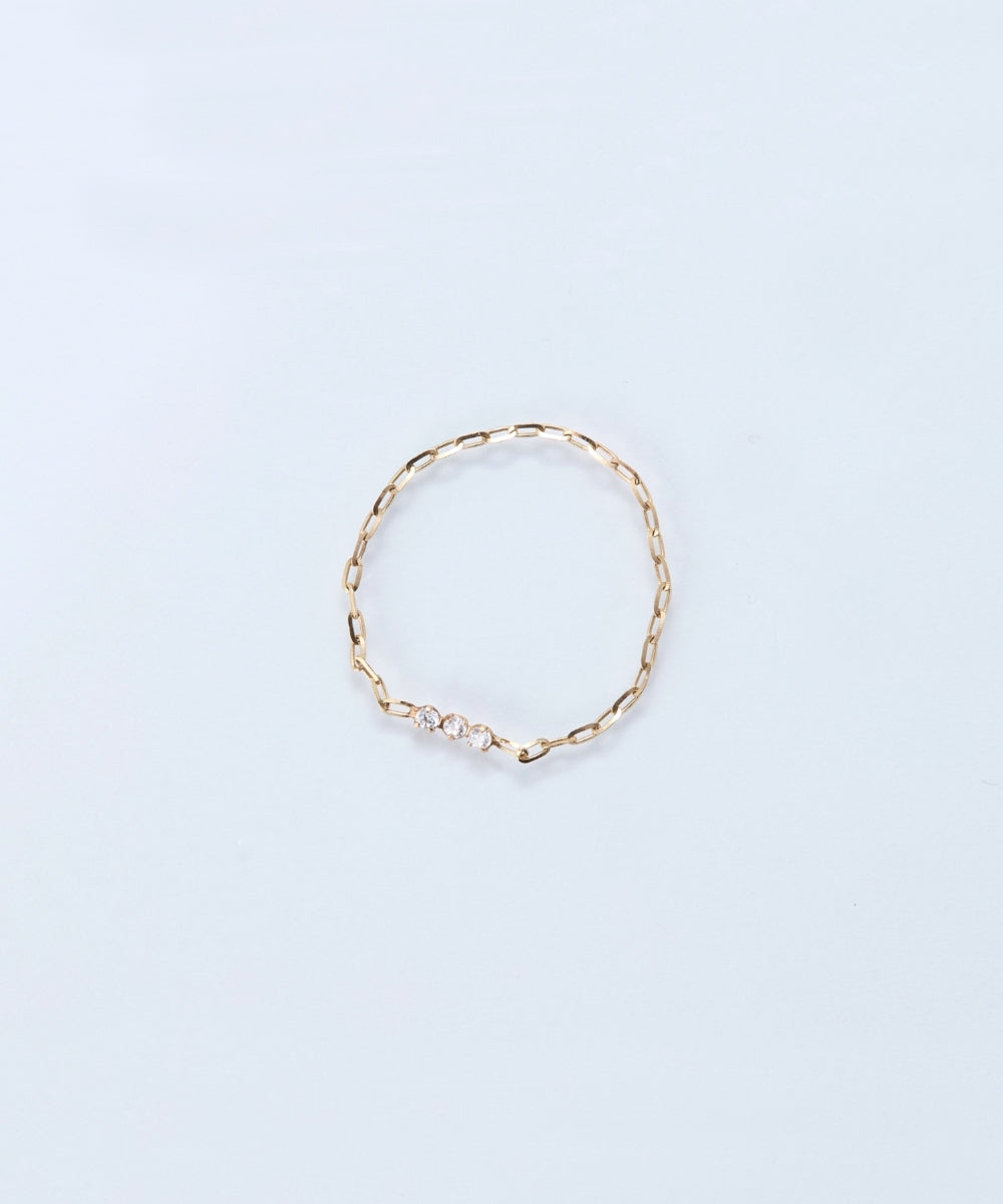 【3石のキュービックジルコニアが上品に輝くK10チェーンリング】