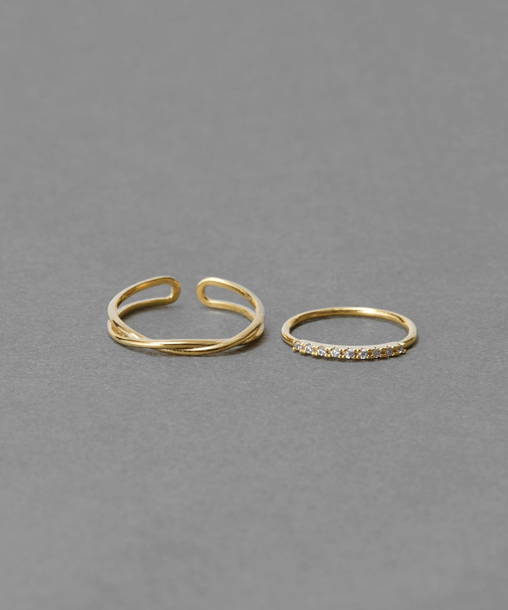 ■カフリング(ベースサイズ11.5号):さり気なくクロスしたラインがモードでメタリックな表情が魅力。