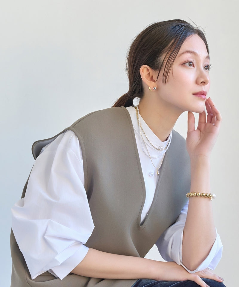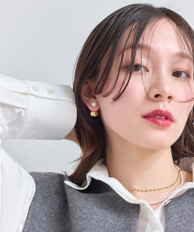 耳のうしろから覗くバックキャッチのデザインが、こなれた印象を与えてくれます。