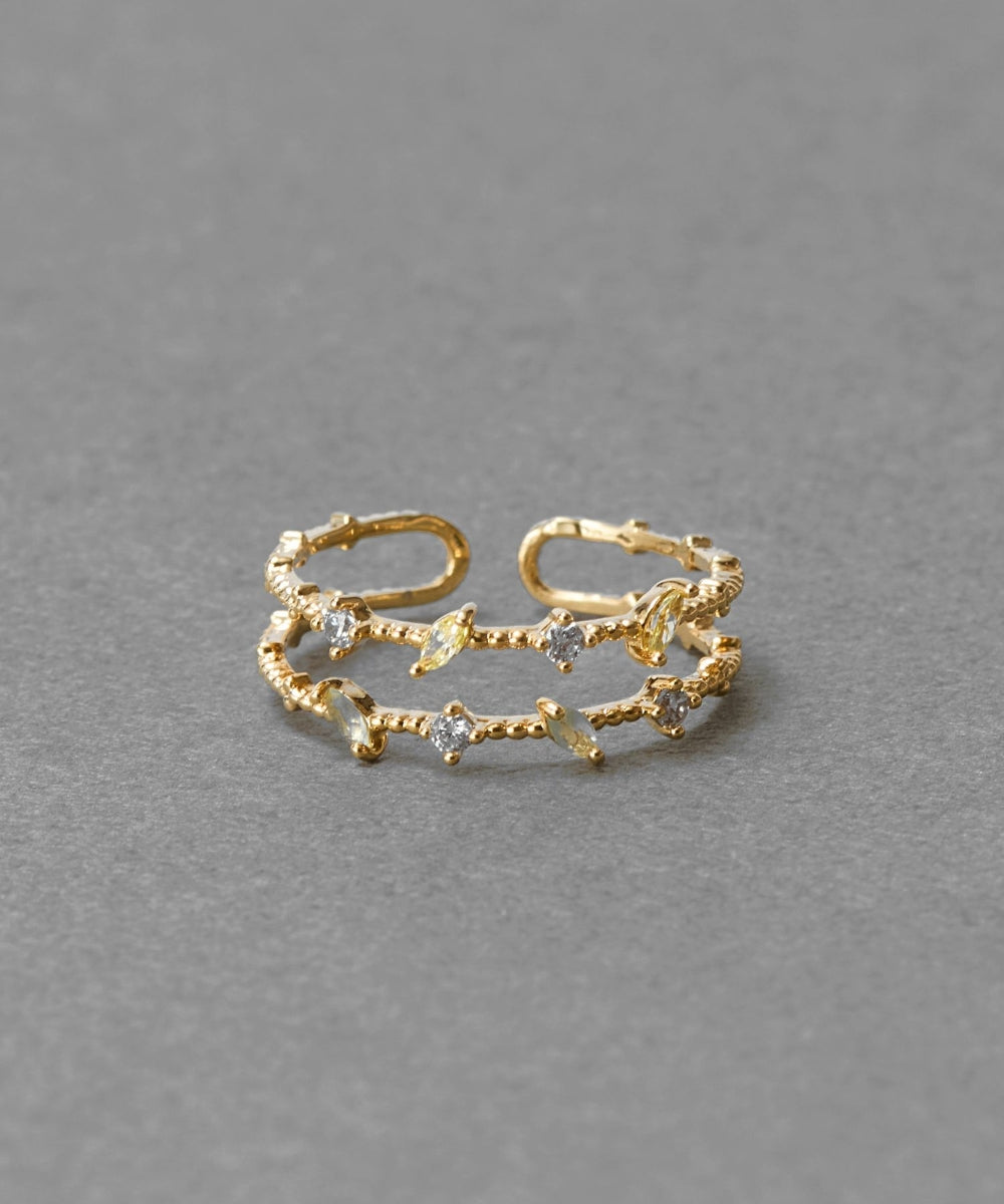 繊細なラインにプチビジューをセッティングしたリング。