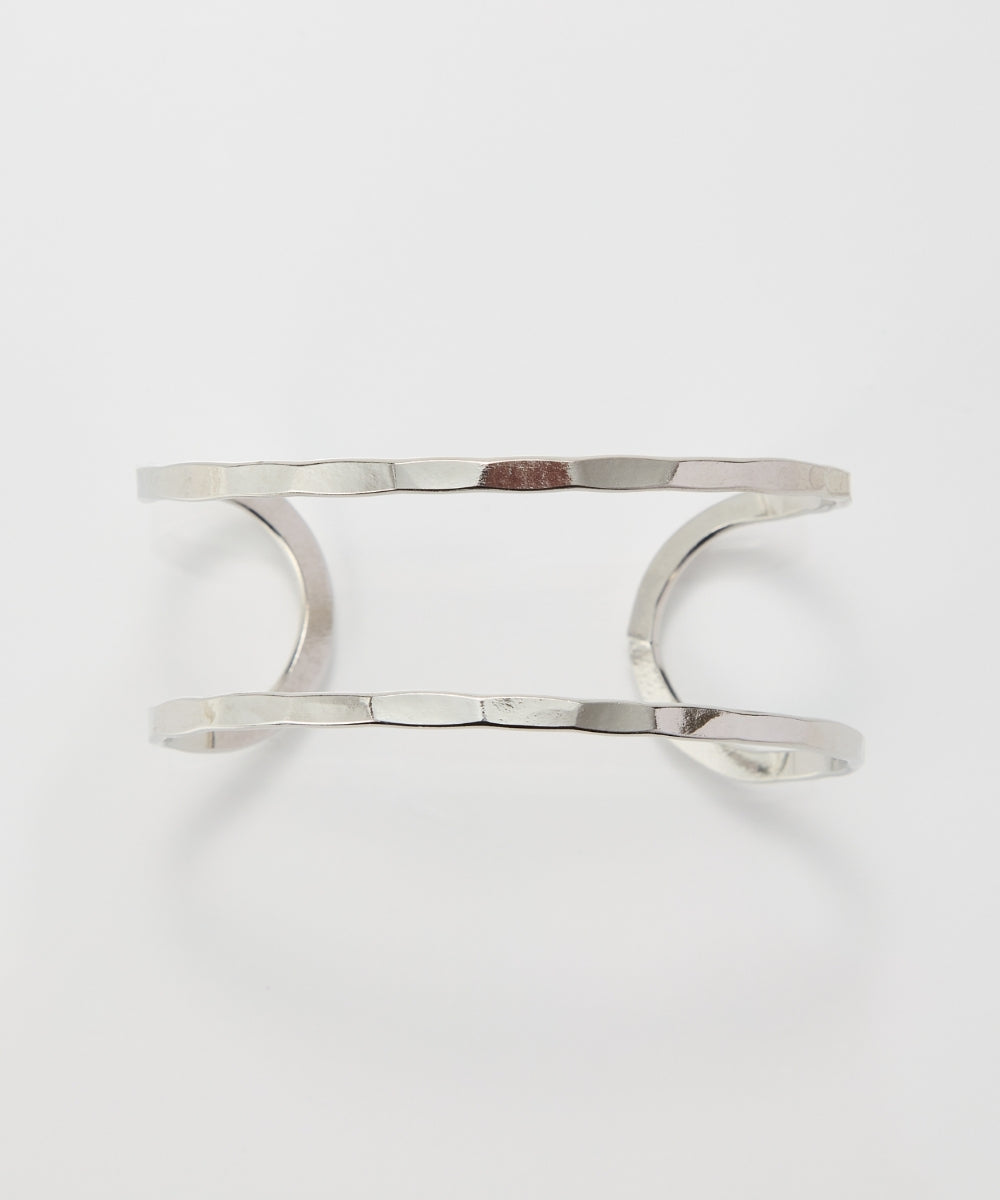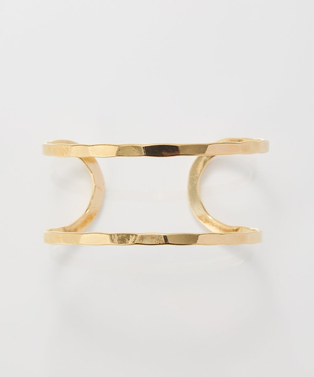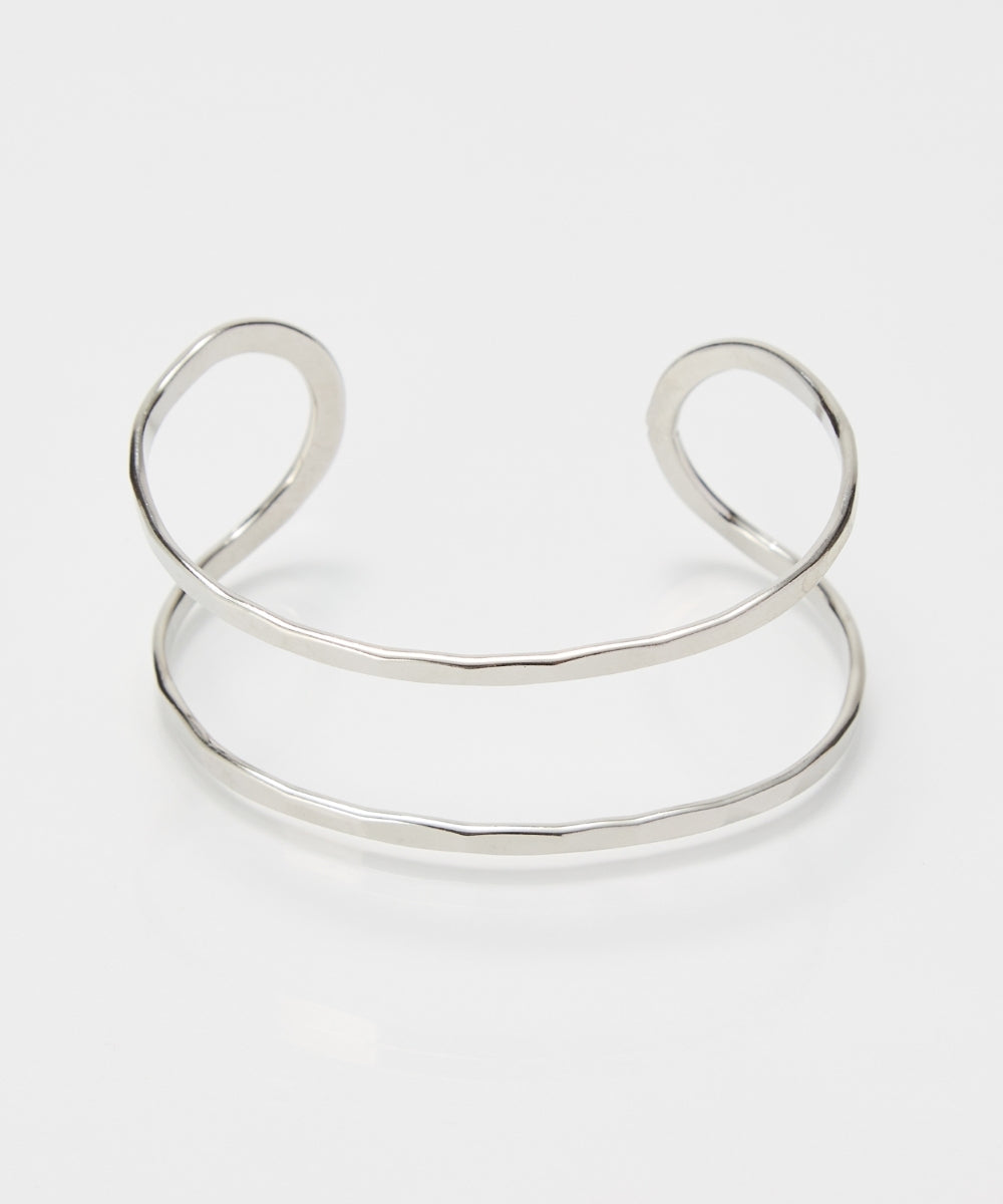 大胆なワイドシルエット2ラインのディテールが際立つモダンなバングル。