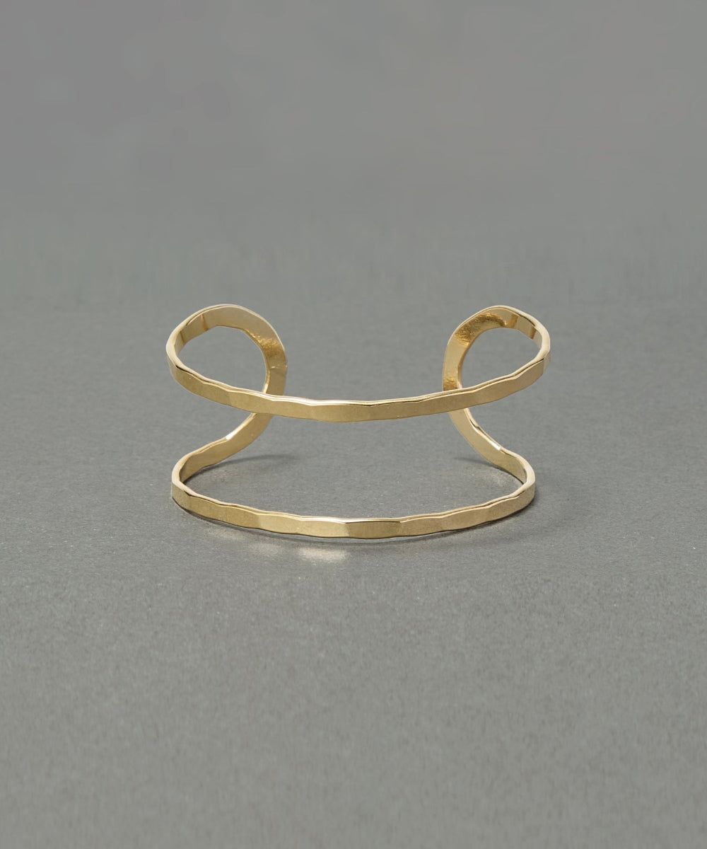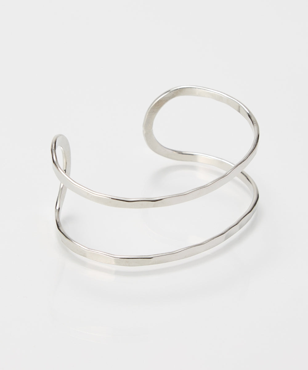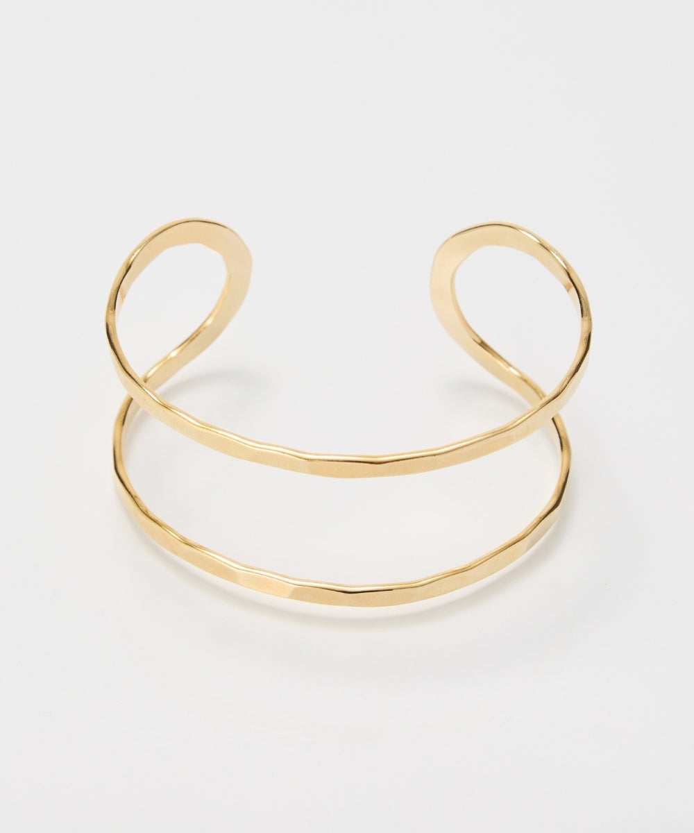 大胆なワイドシルエット2ラインのディテールが際立つモダンなバングル。