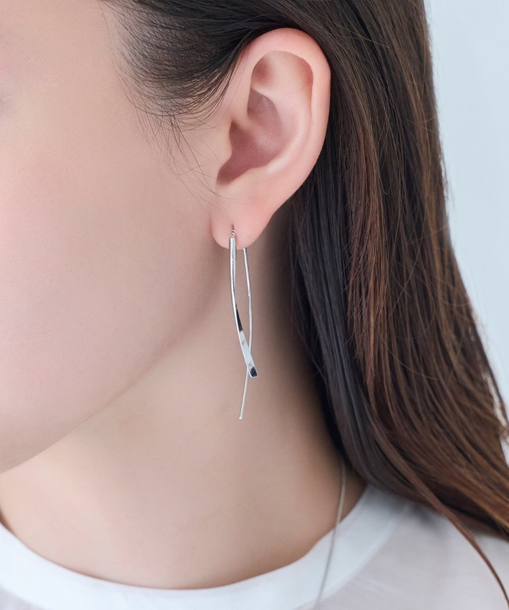 | サイズ | 全長:約10.5cm,モチーフ短:約縦4.1×横0.2cm,モチーフ長:約縦5.3×横0.08cm,ポストサイズ:約5.3cm,ポスト太さ:約0.08cm,重さ(片耳):約1g |