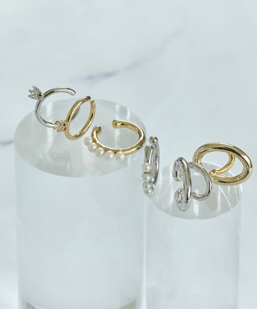 2本のメタルラインが耳元を包む、ダブルシャインイヤーカフ。