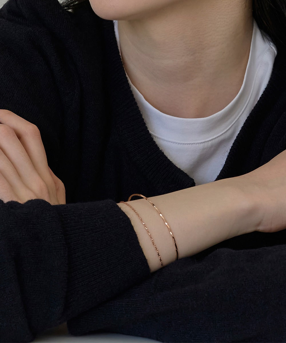 【レイヤードスタイルを叶える金線×チェーンのバングル】