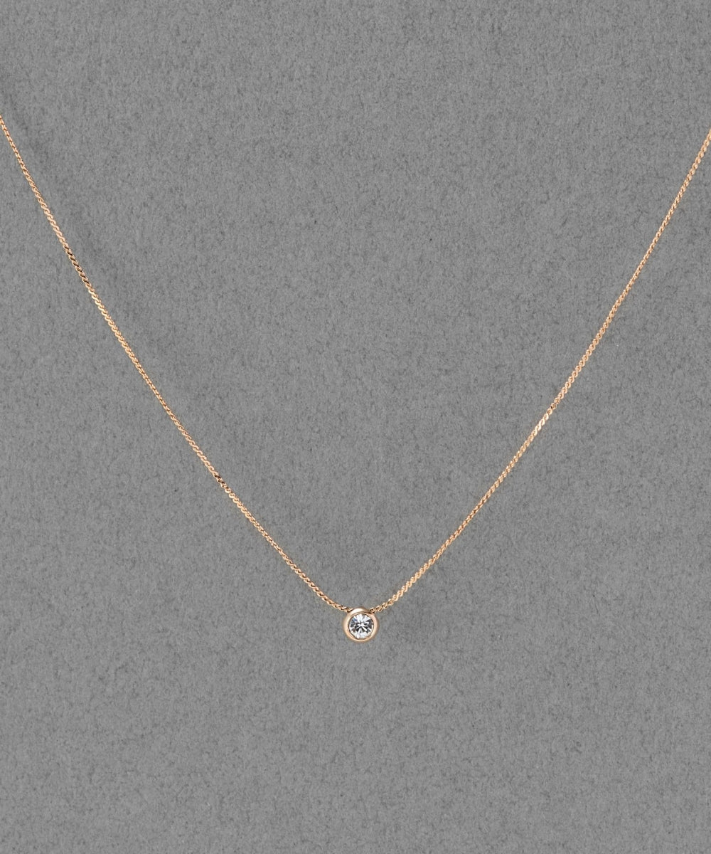 【メタルフレームの縁取りがビジューの輝きを引き立てる、一粒ベゼルセッティングネックレス】