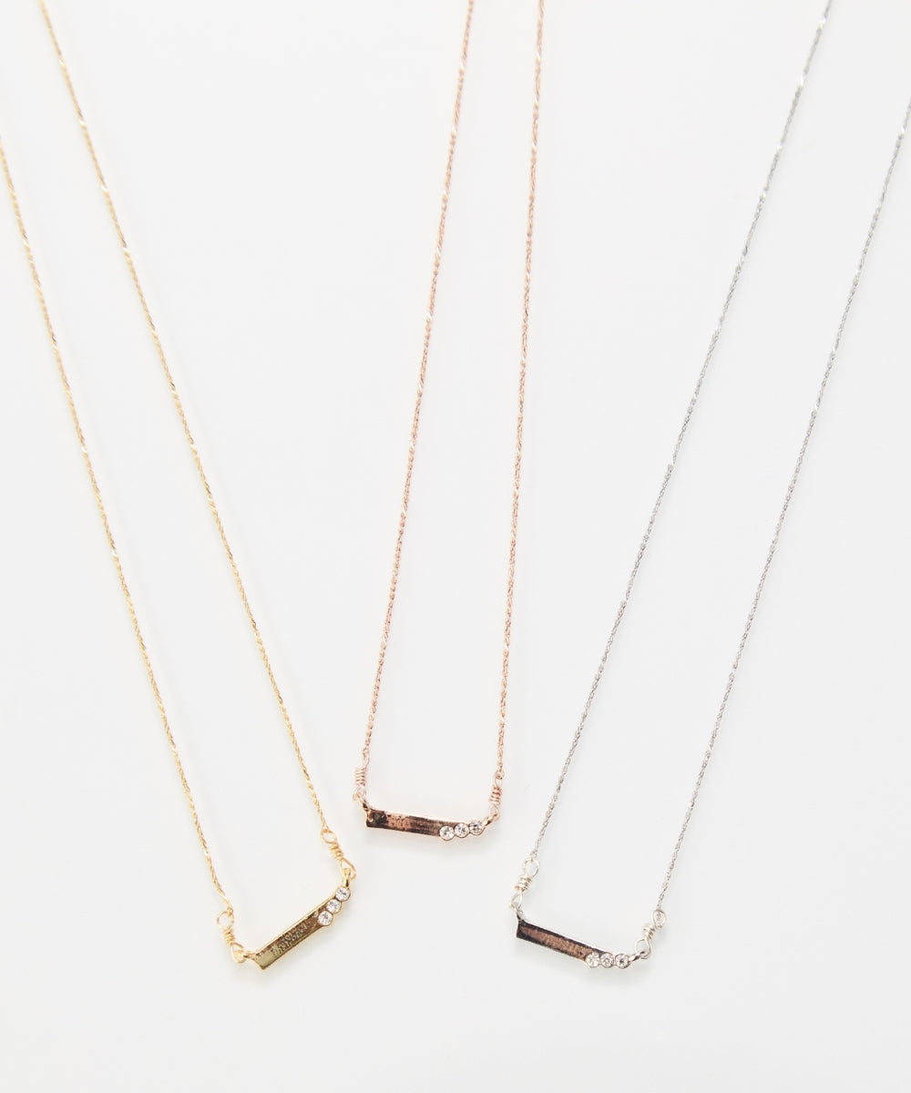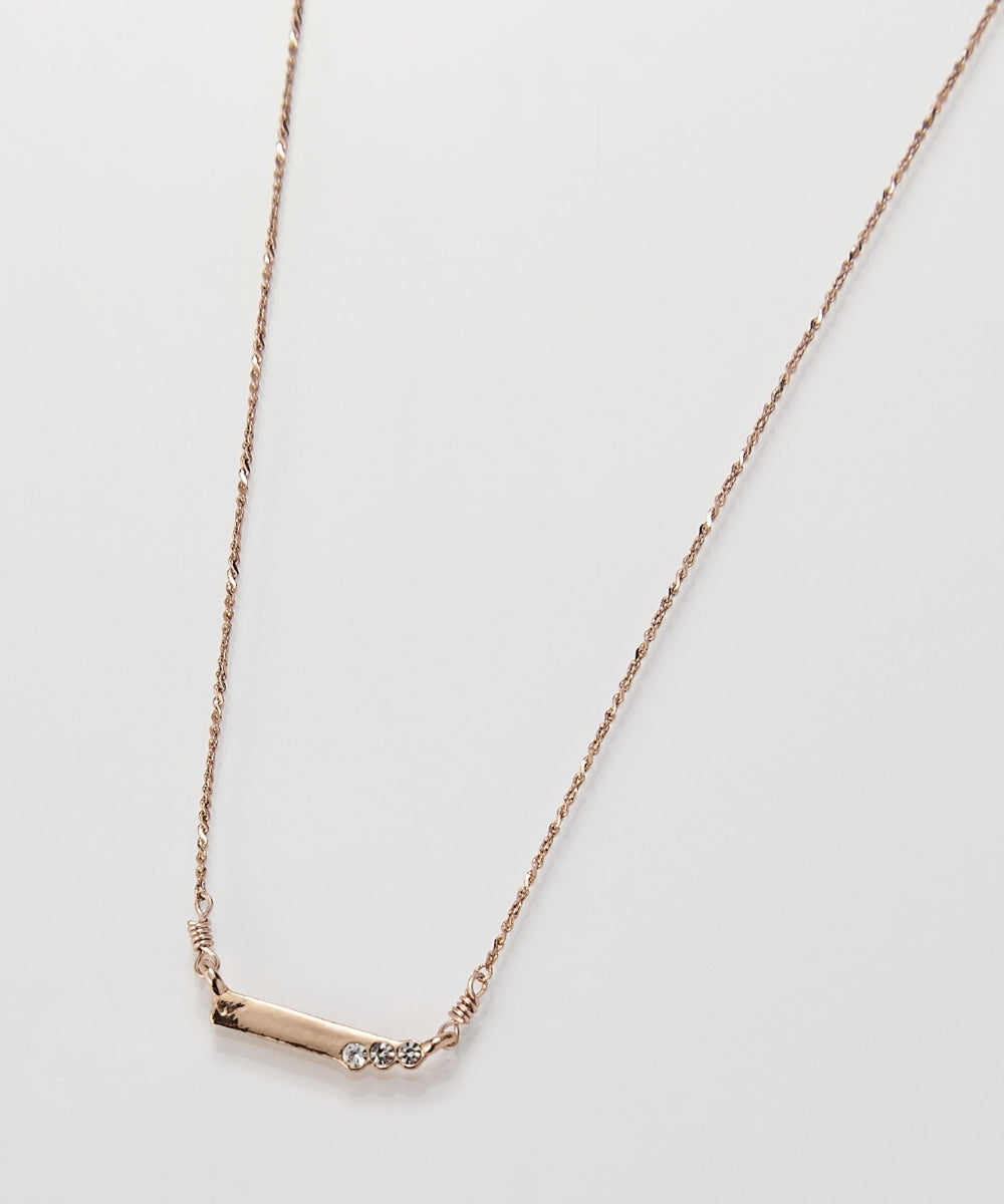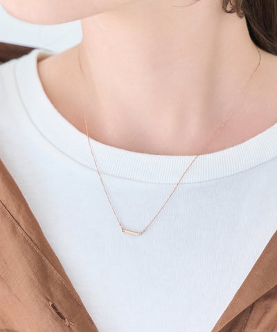 【胸元にストレートなラインを描くネックレス】