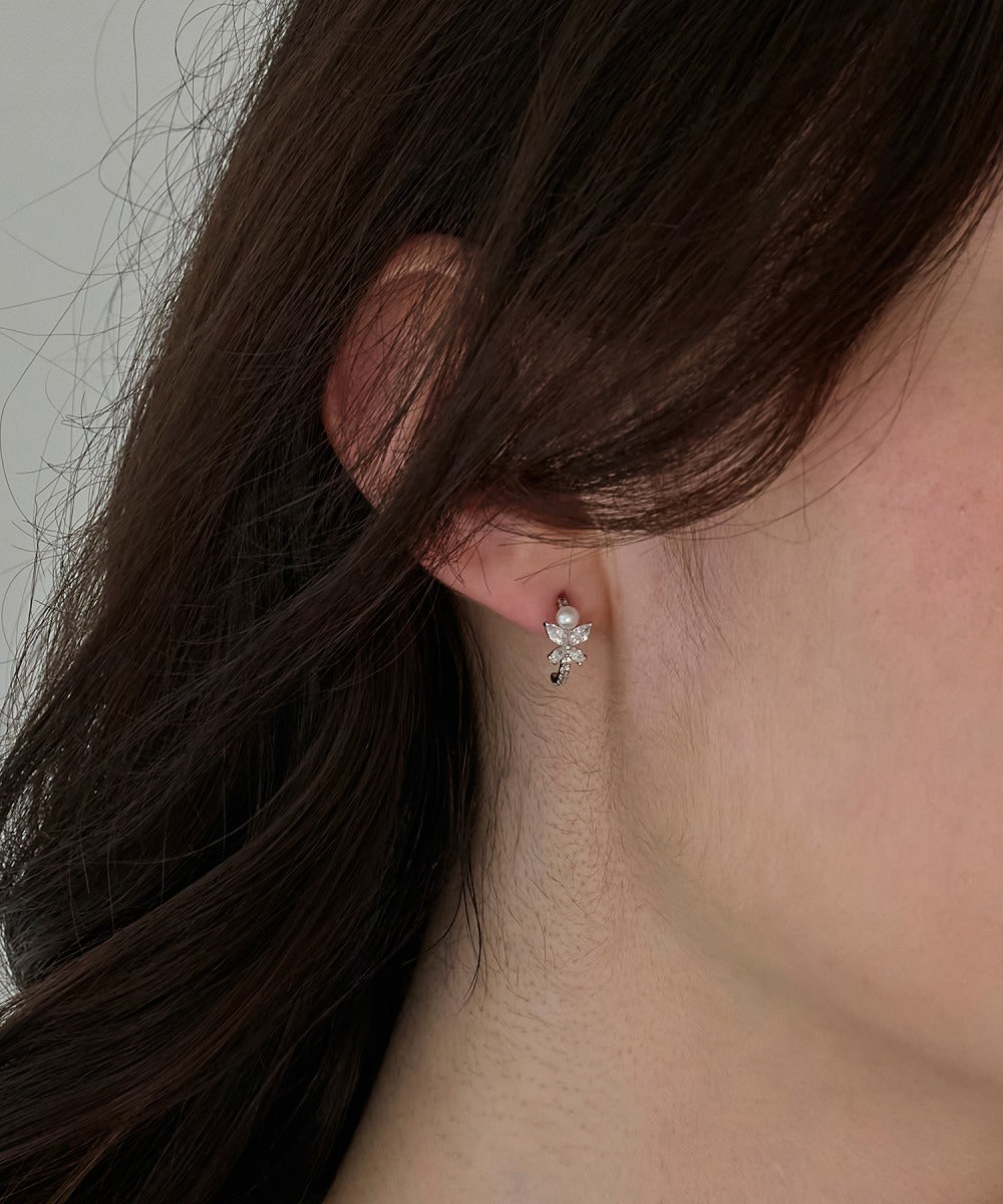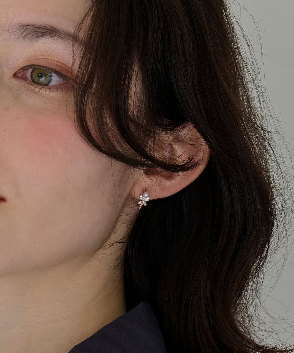 中央には艶やかなパールを添え、耳元を優しく彩るデザインです。