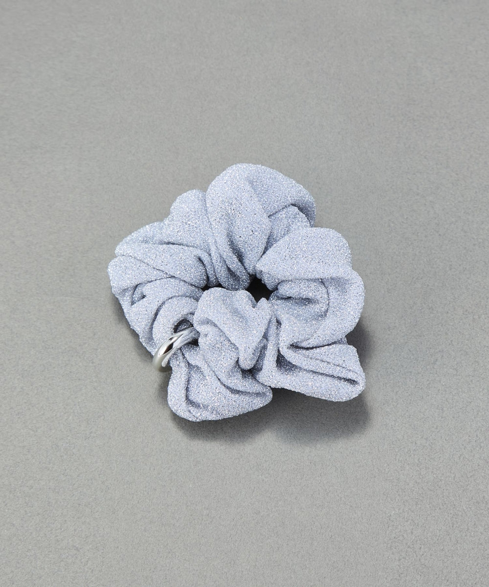 細かなラメが動くたびに煌めくグリッターシュシュ。