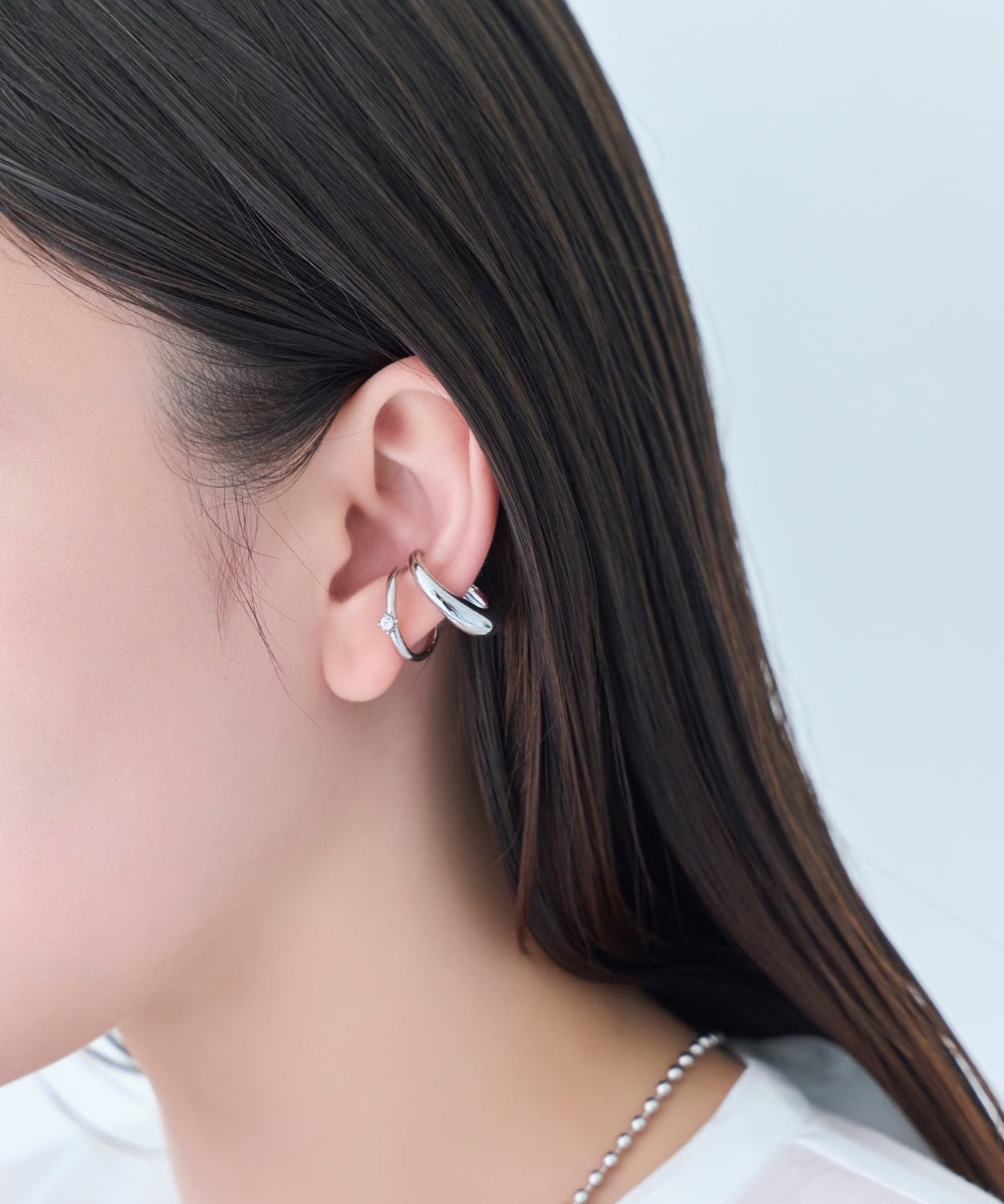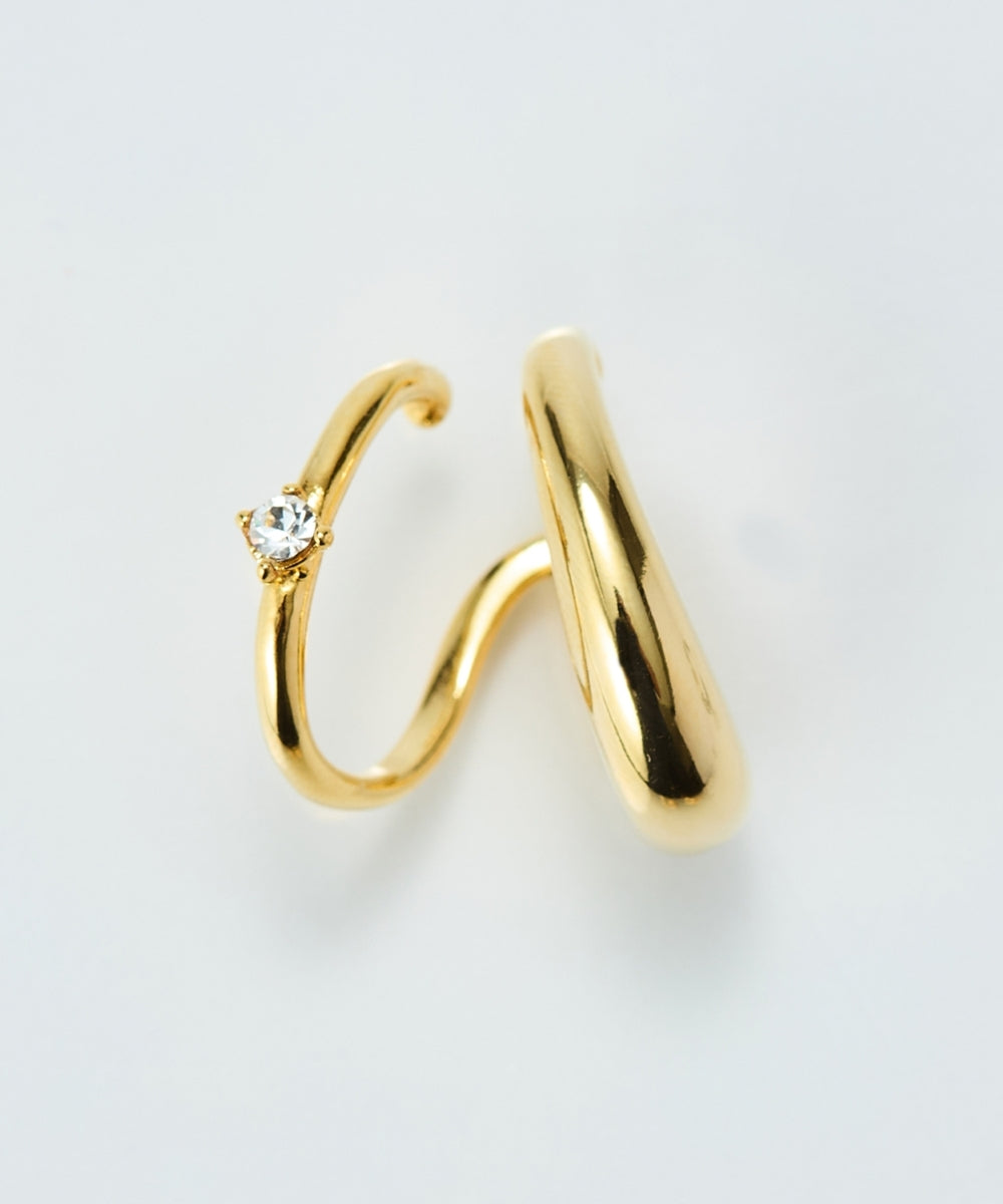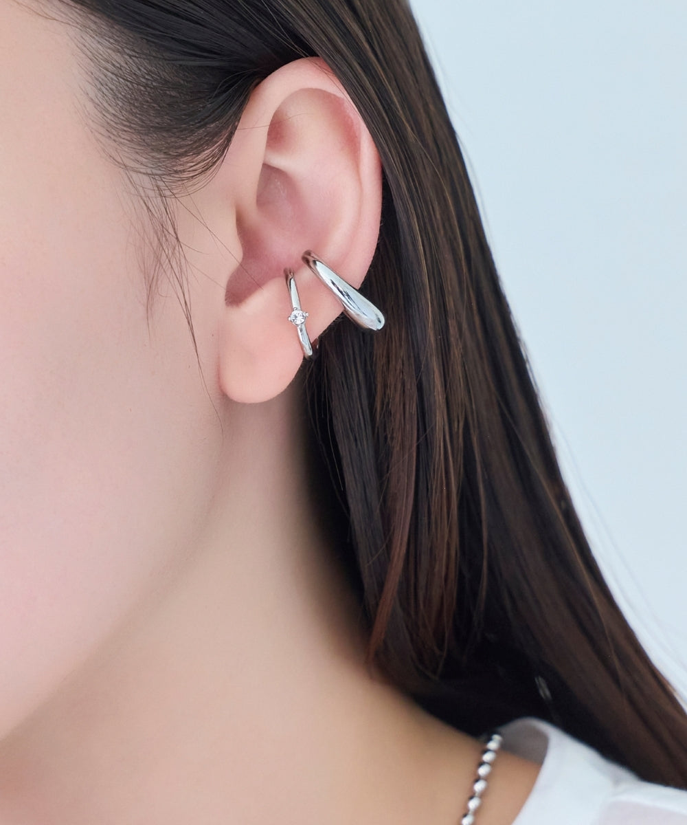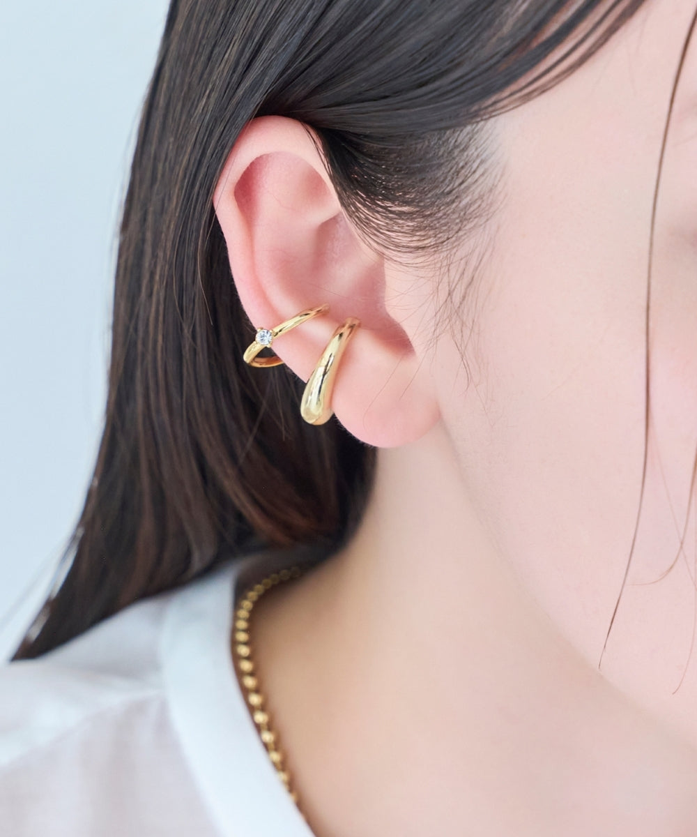 【重ね着けしたようなシルエットの1粒ビジューイヤーカフ】