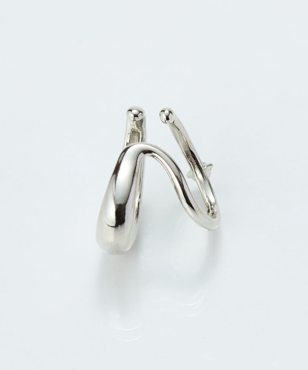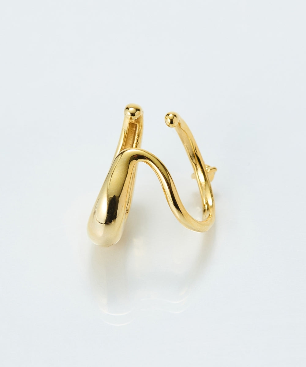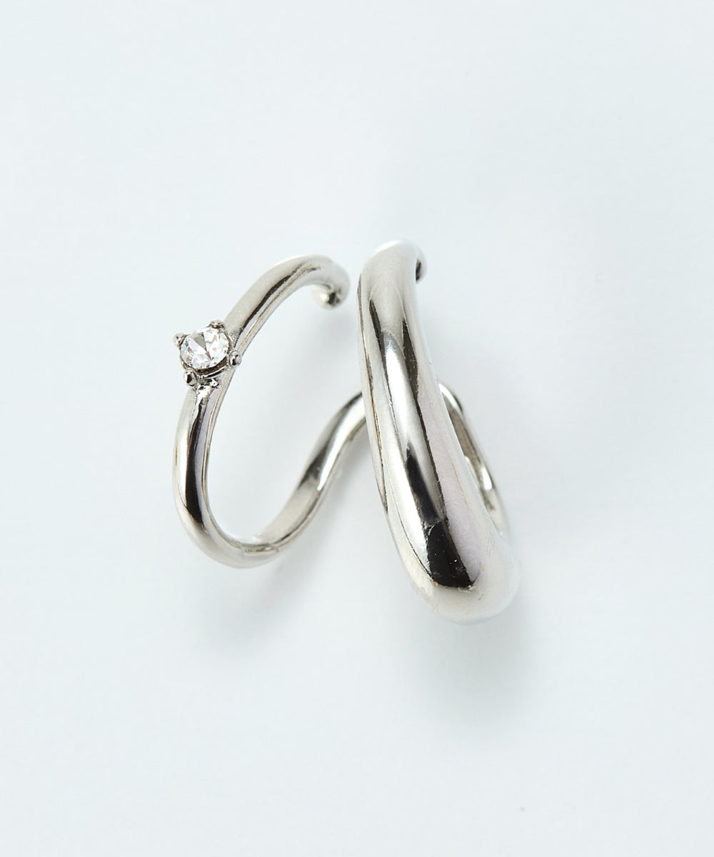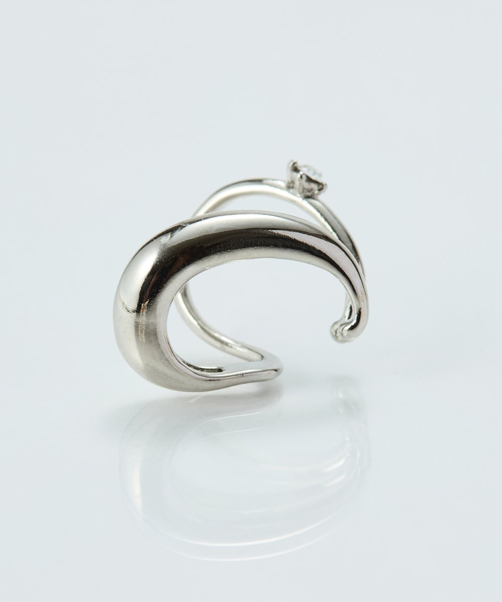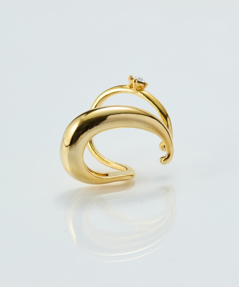 【重ね着けしたようなシルエットの1粒ビジューイヤーカフ】