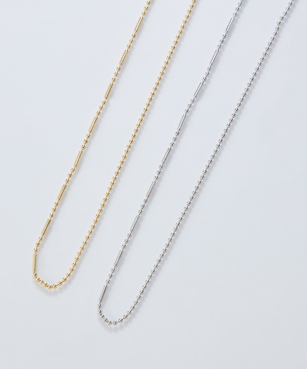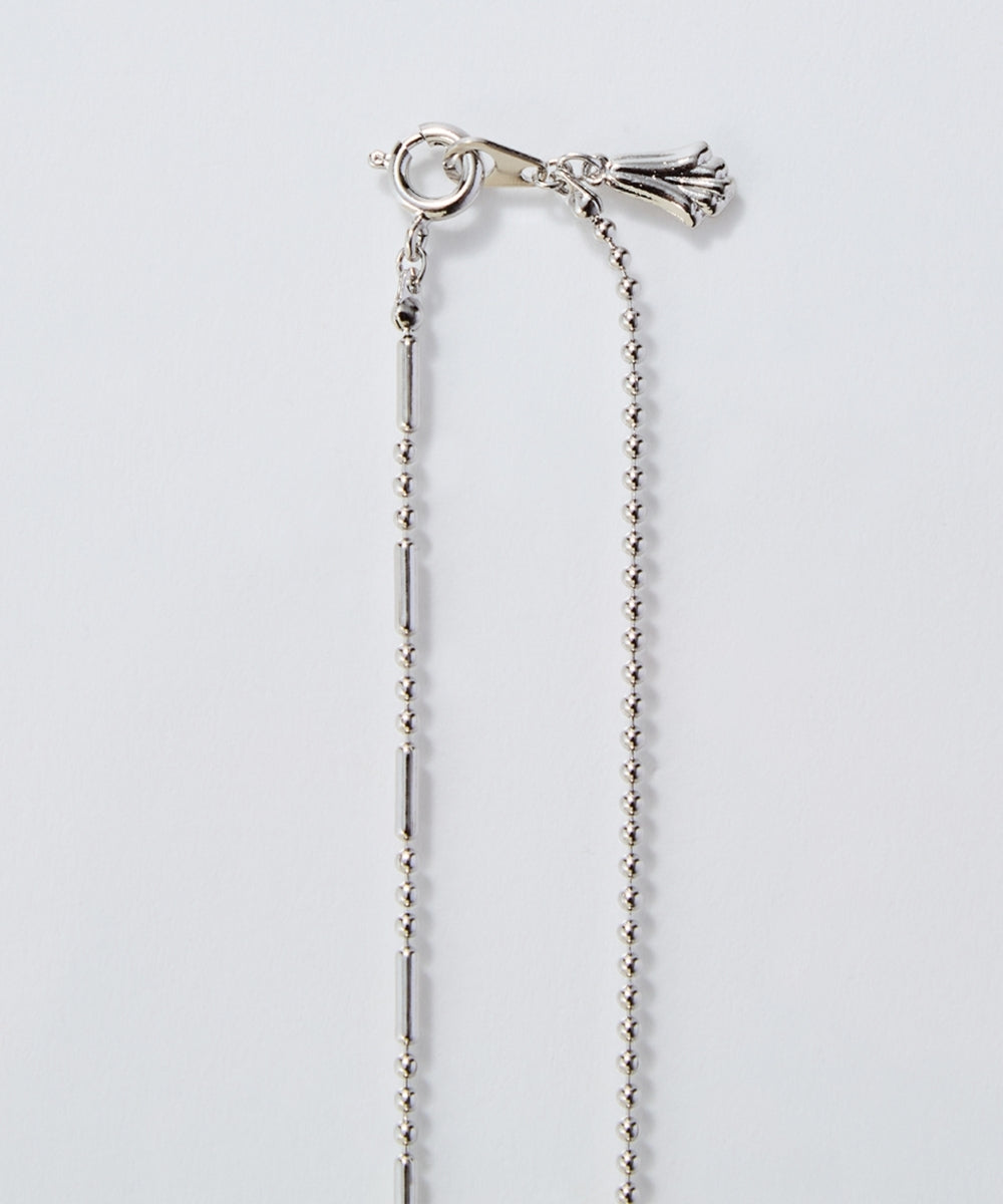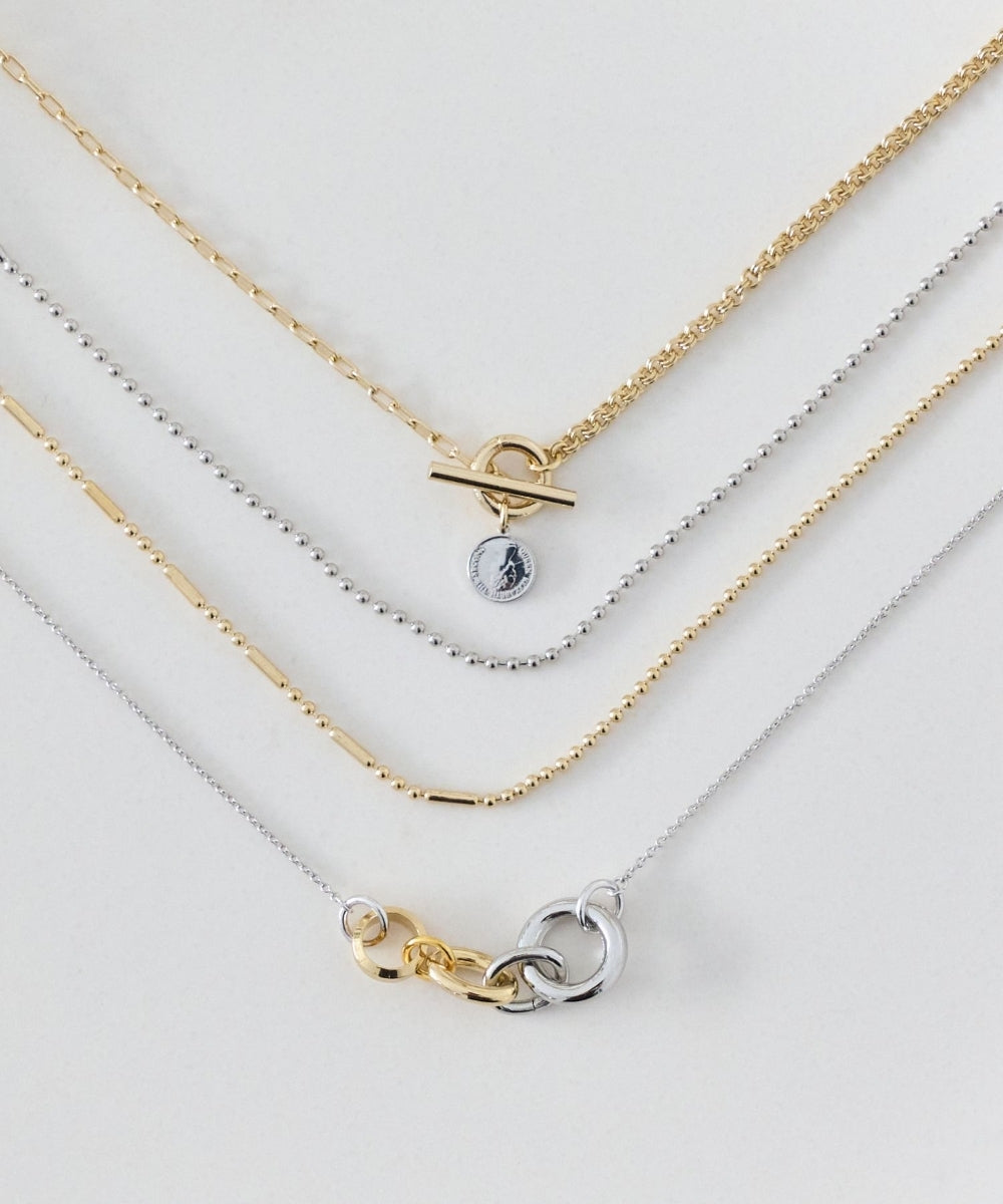 細かなボールチェーンと、程よいアクセントを効かせたデザインボールチェーンをミックスした、ネックレス。