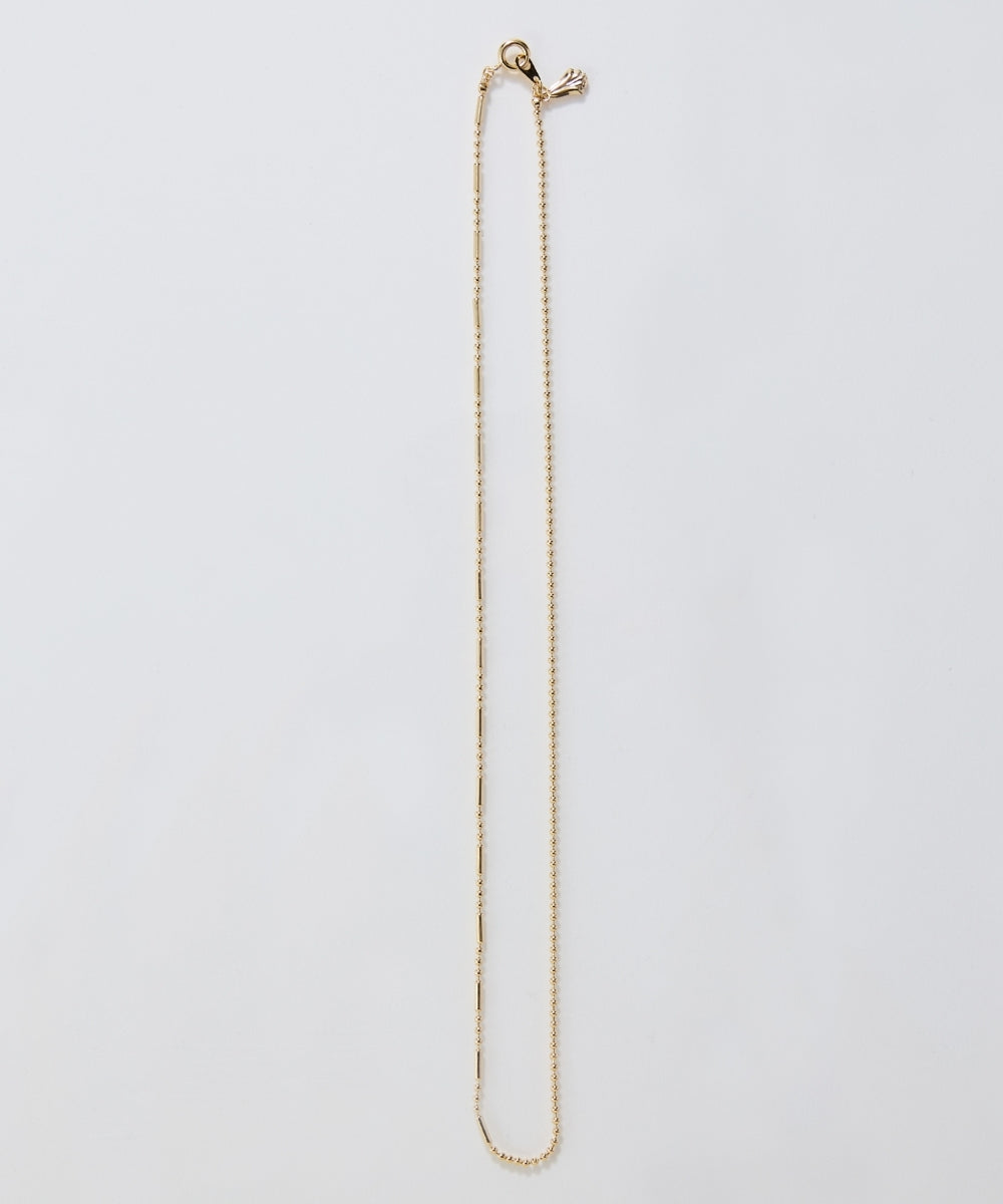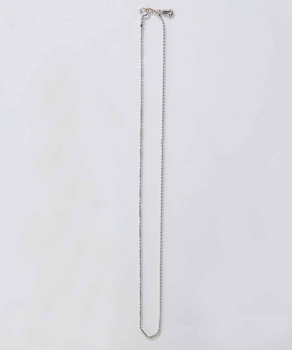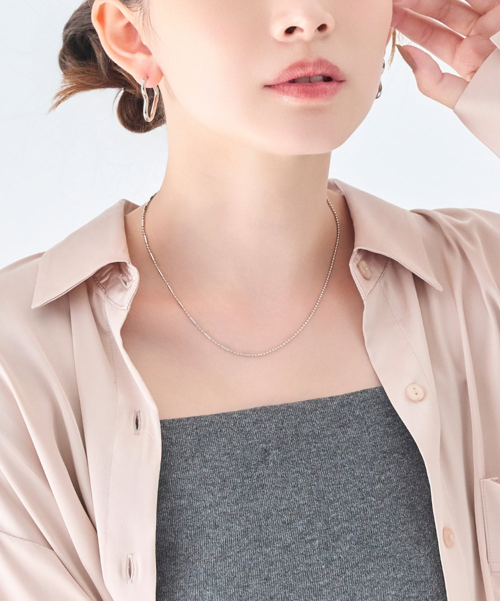 細かなボールチェーンと、程よいアクセントを効かせたデザインボールチェーンをミックスした、ネックレス。