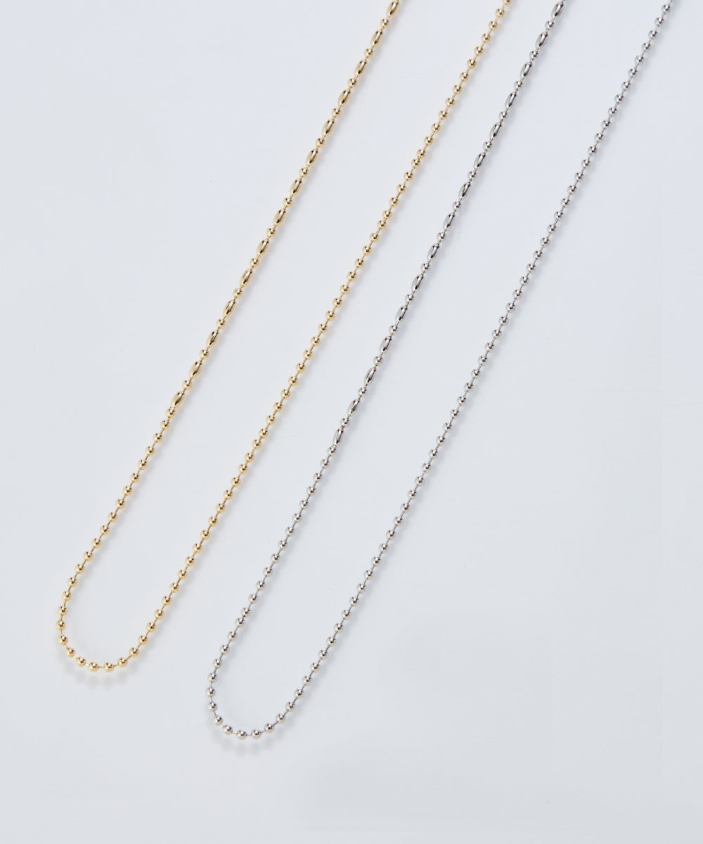 細かなボールチェーンと、柔らかな丸みのビーンズチェーンを組み合わせたチェーンネックレス。