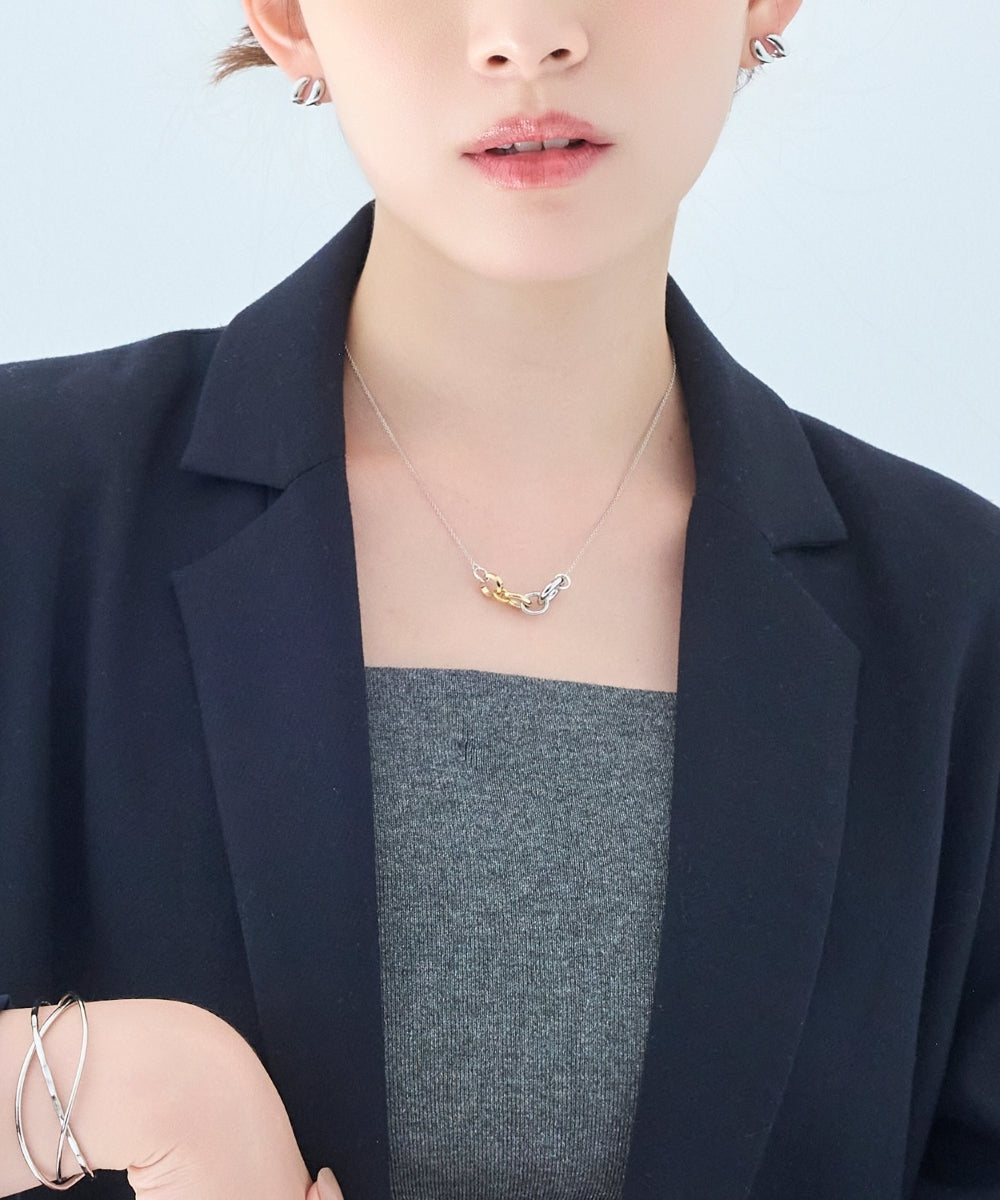フープの重なりが生み出す立体感で、首元を印象的に魅せてくれます。