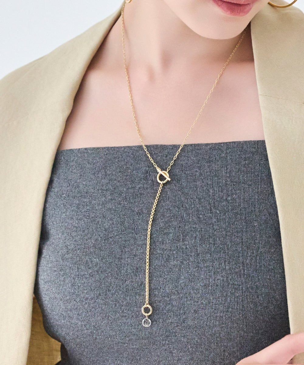 スッキリとした細めチェーンに、マンテルを組み合わせたロングネックレス。