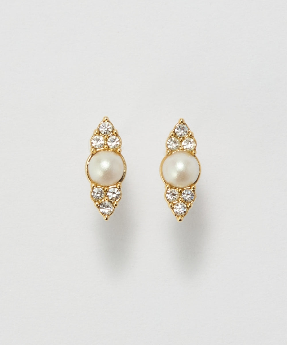 【パールとスト-ンを華やかにあしらった品のあるセラミックポストピアス】